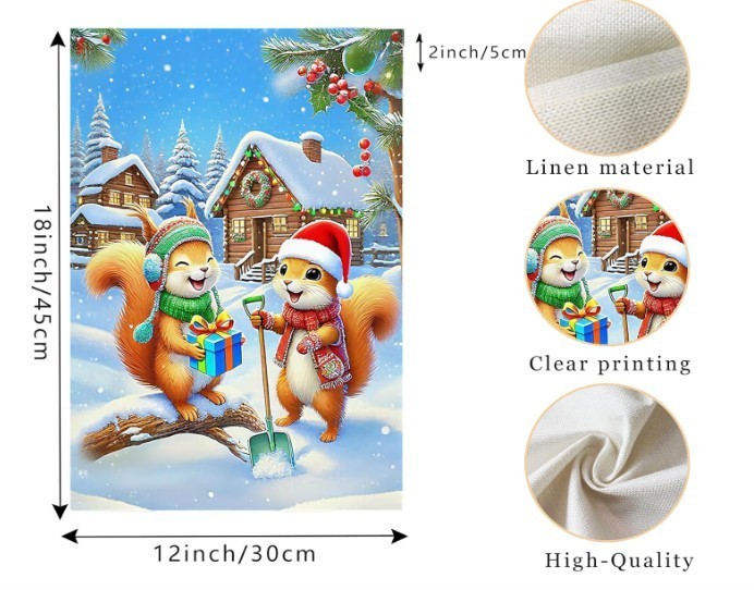 как выглядит Christmas Squirrels Garden Flag Festive Snow Double Sided Burlap 12"x18" фото