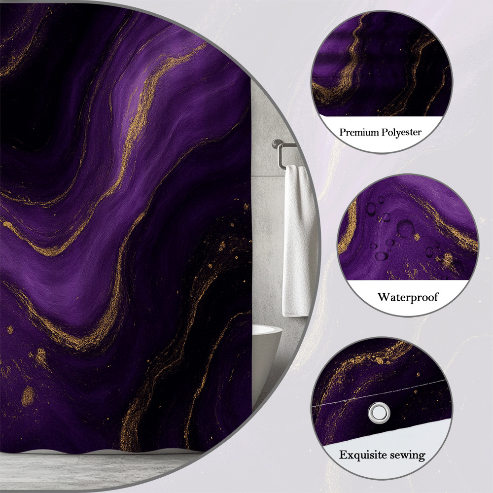 Elegant Purple and Gold Marble Shower Curtain for Bathroom Decor