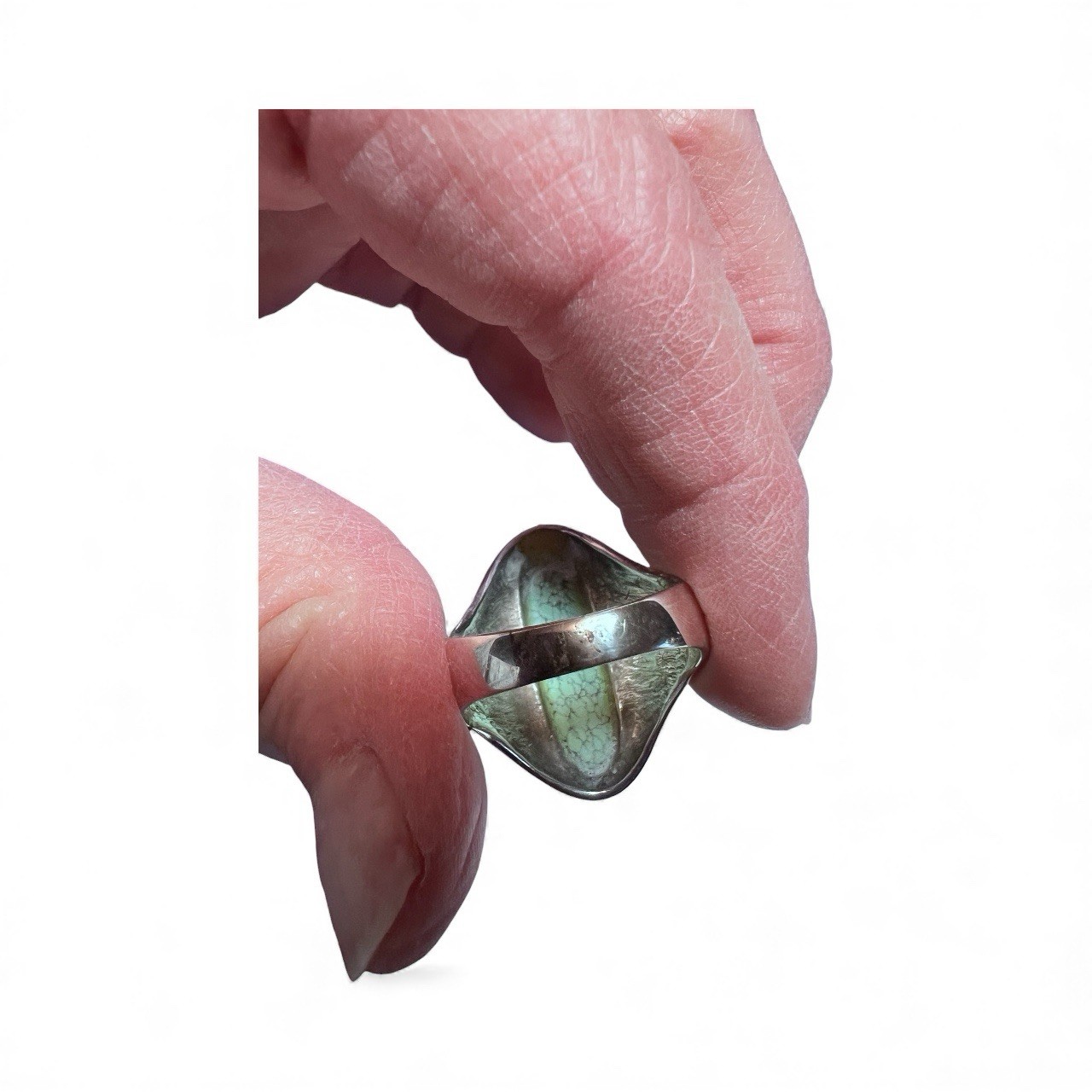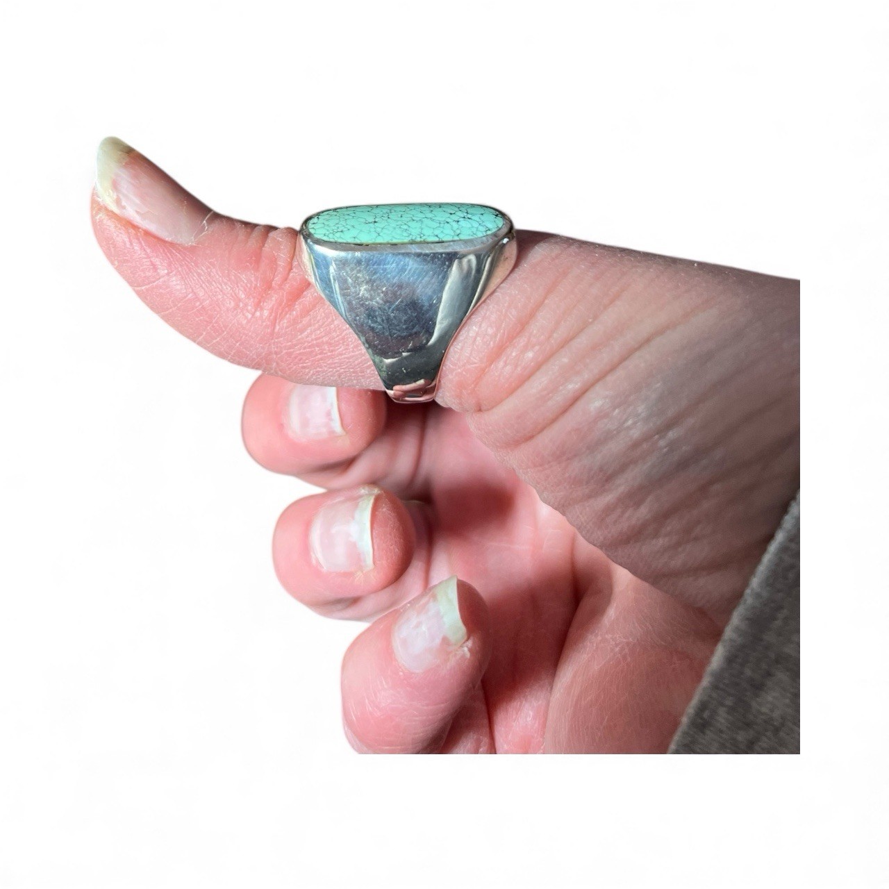 Vintage Sterling Silver 925 Turquoise Cabochon Ring Size 10.5