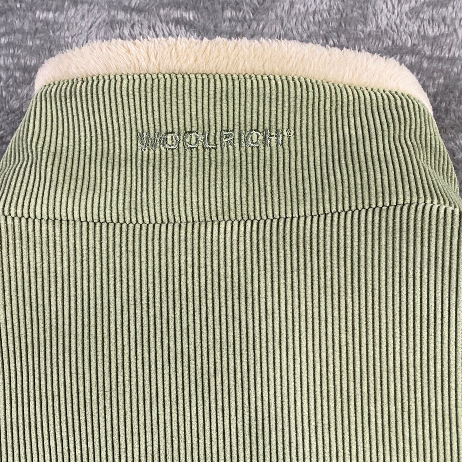 как выглядит Woolrich Womens Sherpa Lined Corduroy Vest Lt Sage Green Size M Full Zip Pockets фото