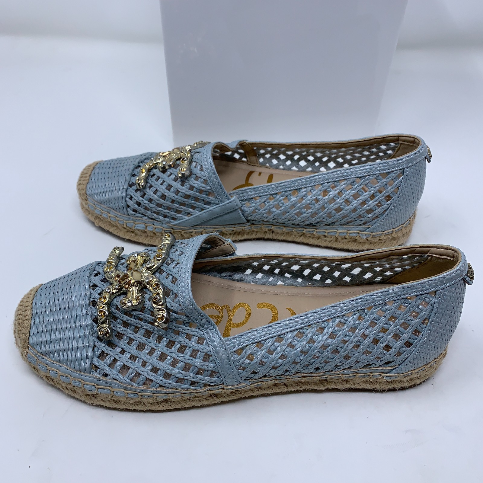 как выглядит Sam Edelman Womens 6.5M Blue Embellished Khiara Espadrille Loafer NEW фото