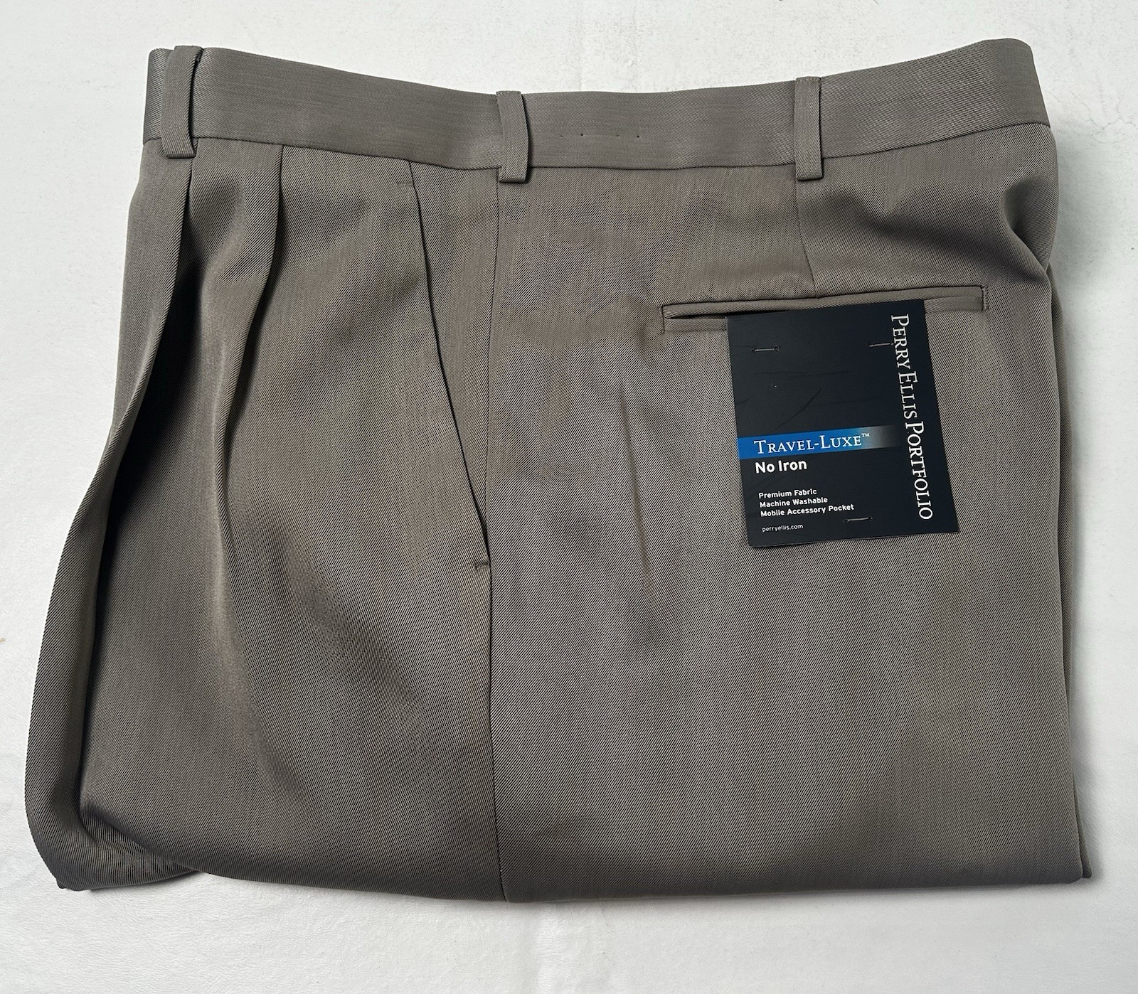 NWT PERRY ELLIS PORTFOLIO TRAVEL-LUXE KHAKI NO IRON DRESS PANTS 38x32
