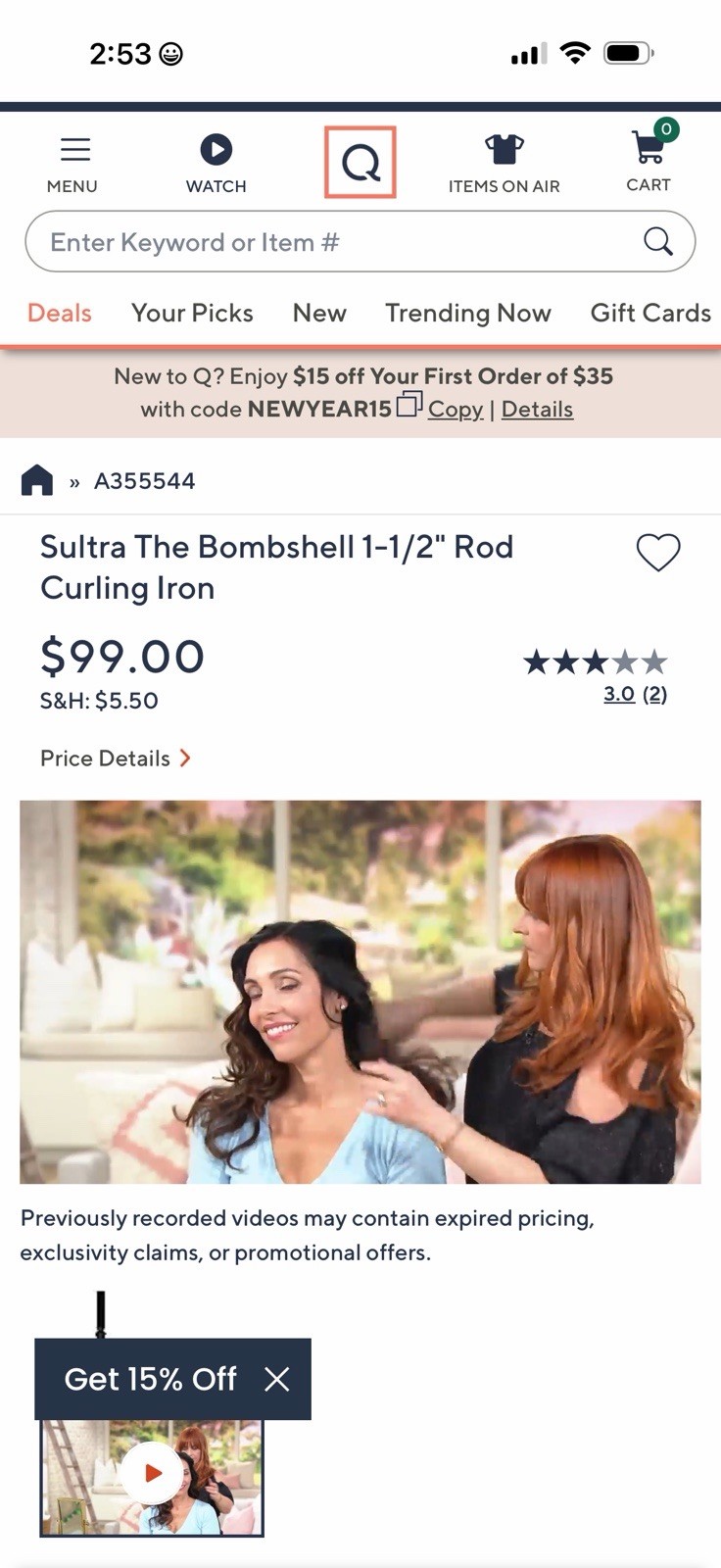 Sultra The Bombshell Clipless Rod Curling Wand, 1.5 Brand New Aired In QVC 99