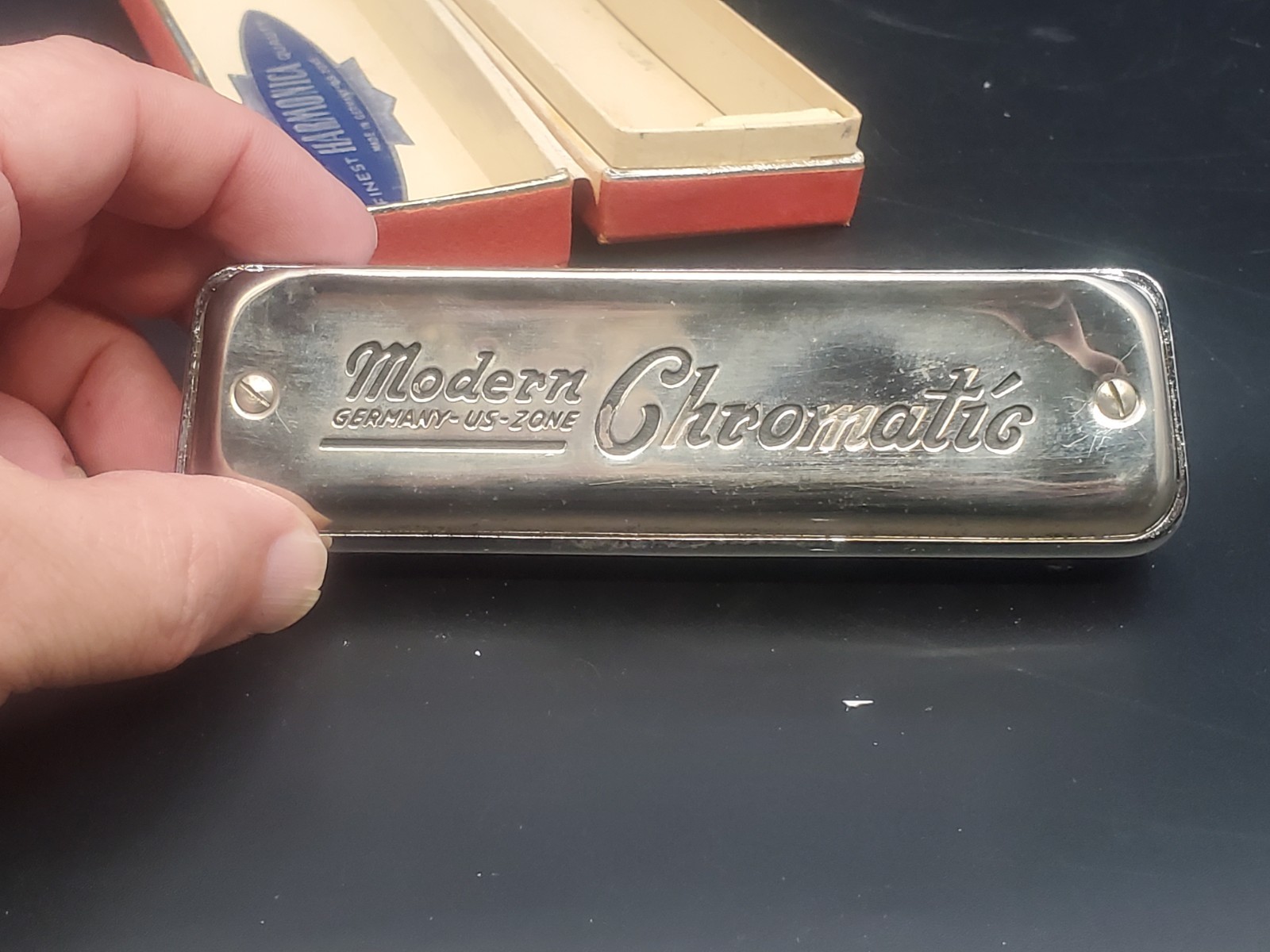 Vintage Modern Chromatic Germany US Zone Harmonica, Case