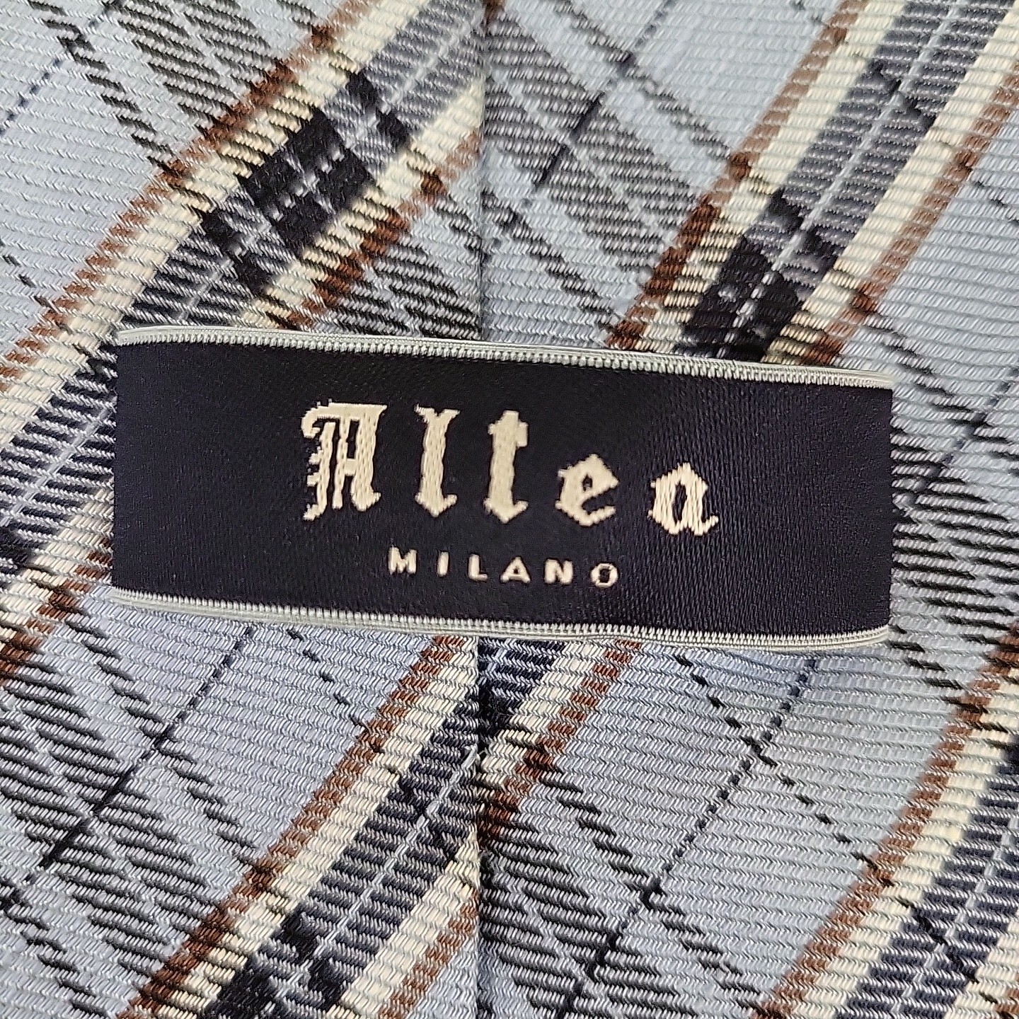 Altea Milano Necktie Tie Blue Diagonal Plaid Silk Blend Made in ITALY