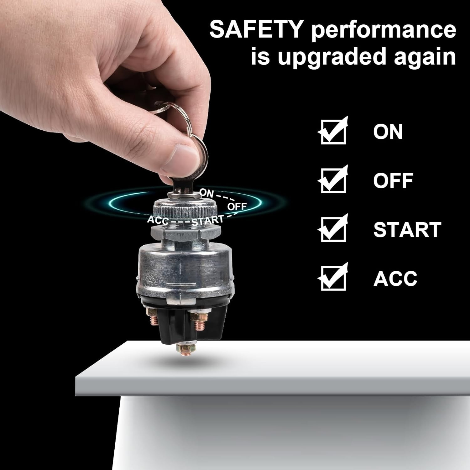 Ignition Switch with Key, 4 Position Universal Key Switch, Starter Switch 12V...