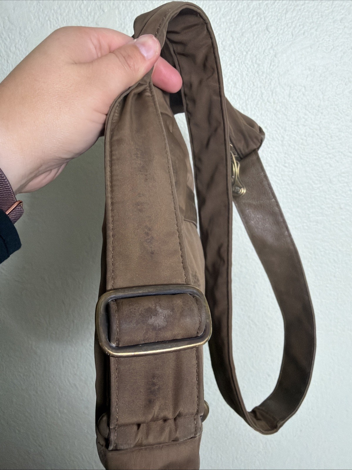Ameribag Brown Sling Bag Stains Adjustable Strap 17x9x5
