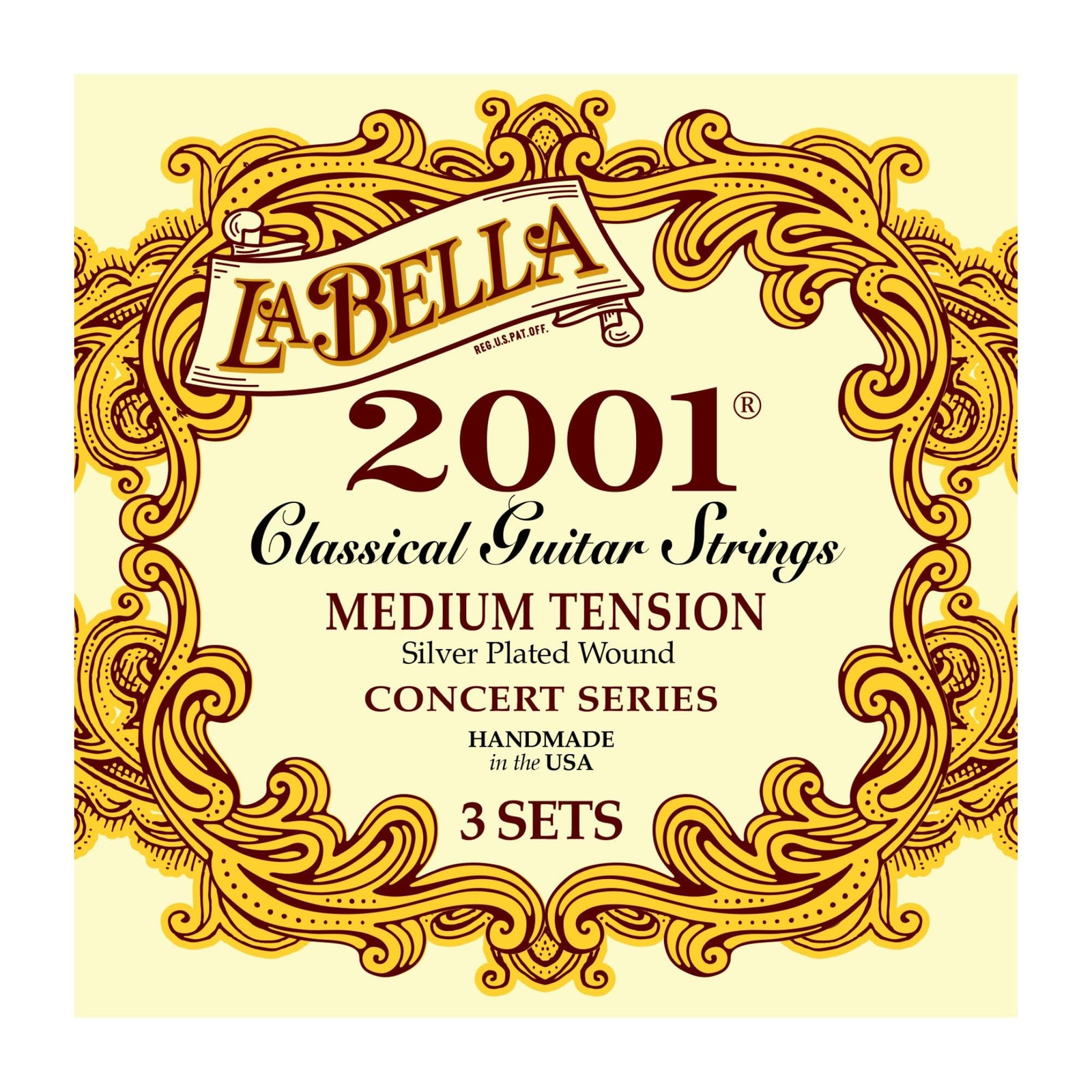 La Bella 2001 Medium Tension Silver-Plated wound Classical Guitar String - Pa...
