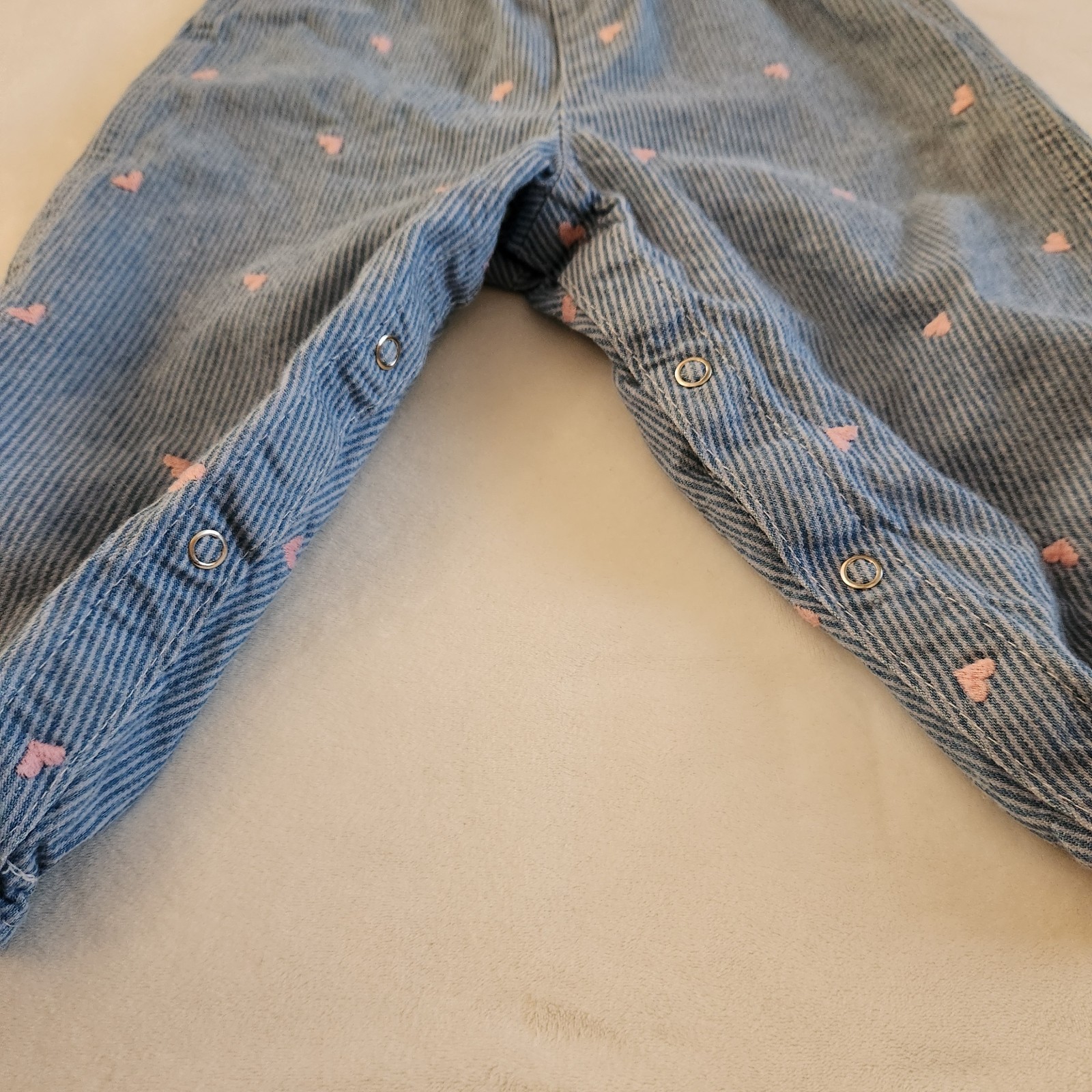 как выглядит Vtg Baby Oshkosh Bgosh Overalls Stripe Denim Embroidered Pink Hearts 24 Cotton фото