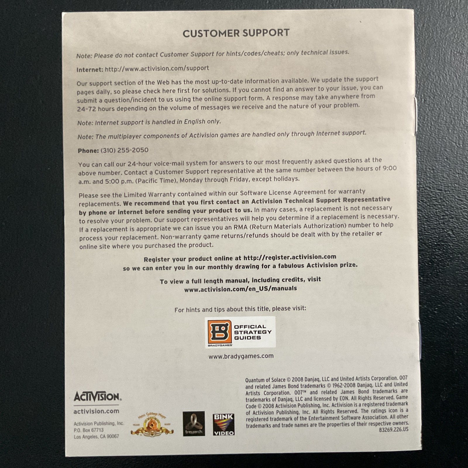 007 Quantum of Solace PS3 PlayStation 3 Instruction Manual Only