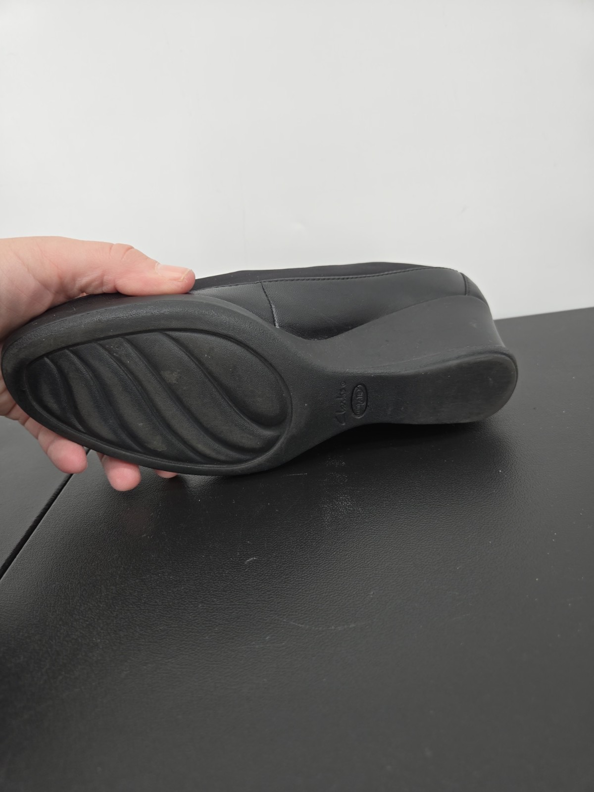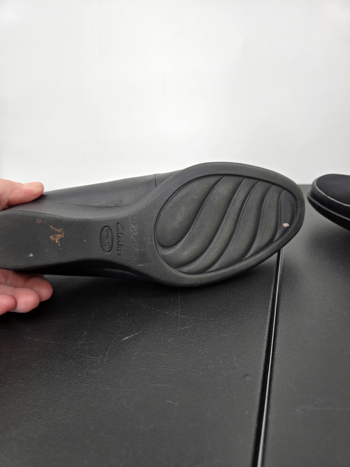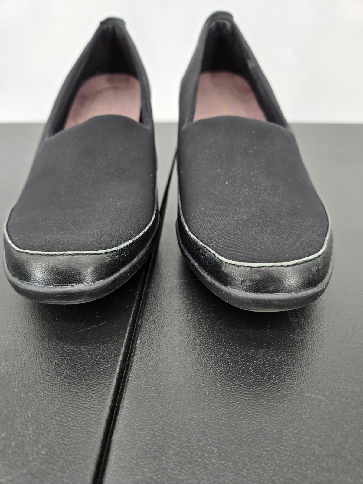 как выглядит Clarks Everyday Womens 8W Black Leather Slip On Wedge Comfort Loafer Shoes 66405 фото