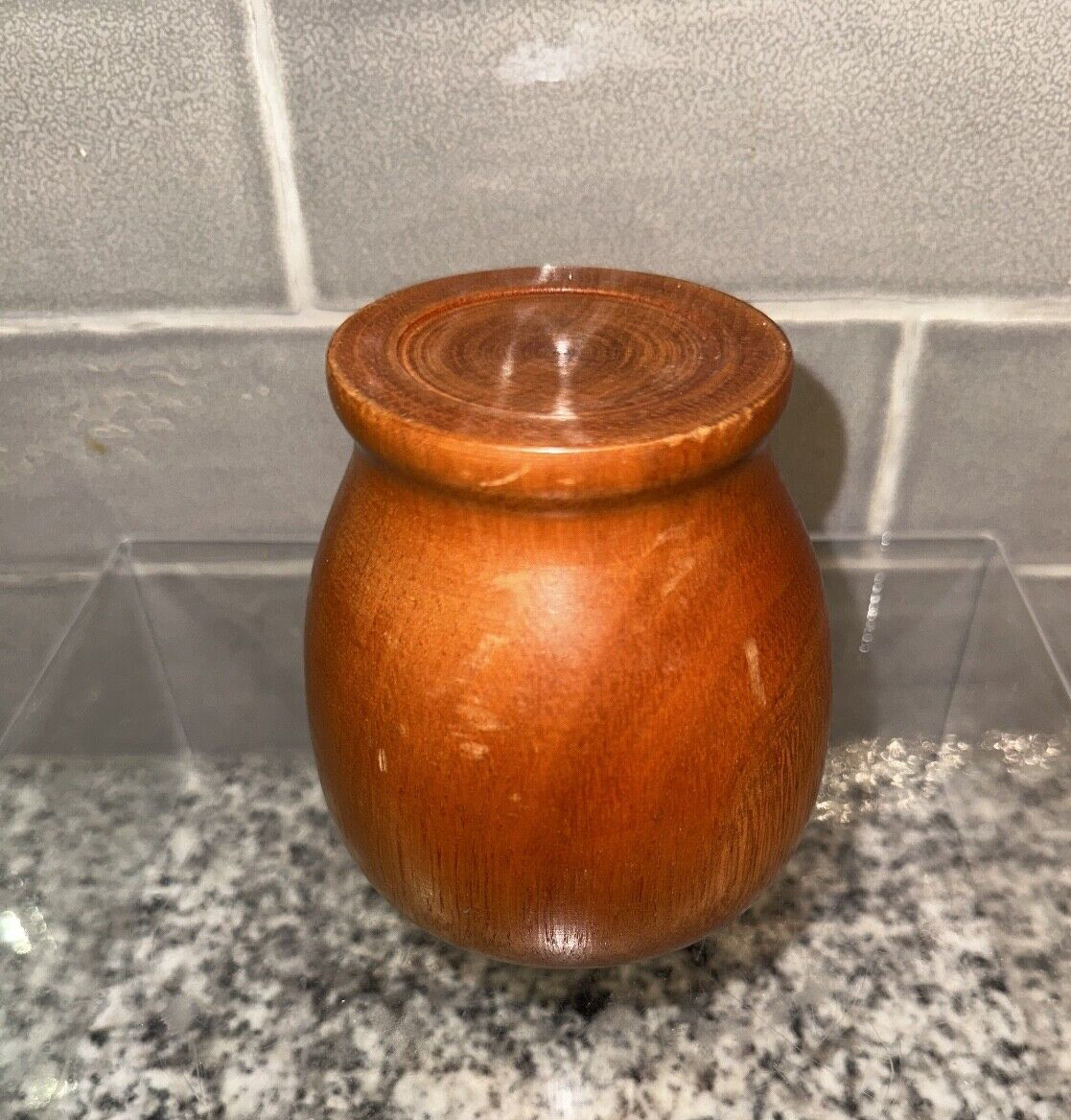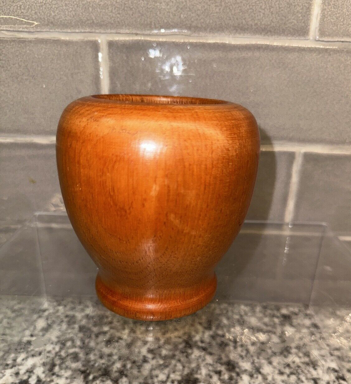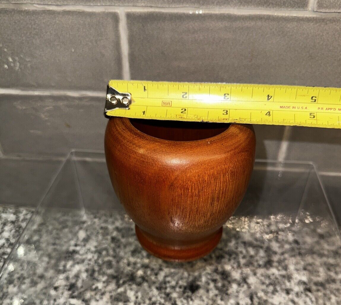 • Hand Carved Turned Wood Vase / Bowl 4" Decorative