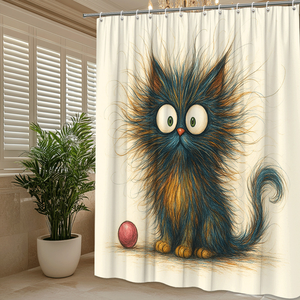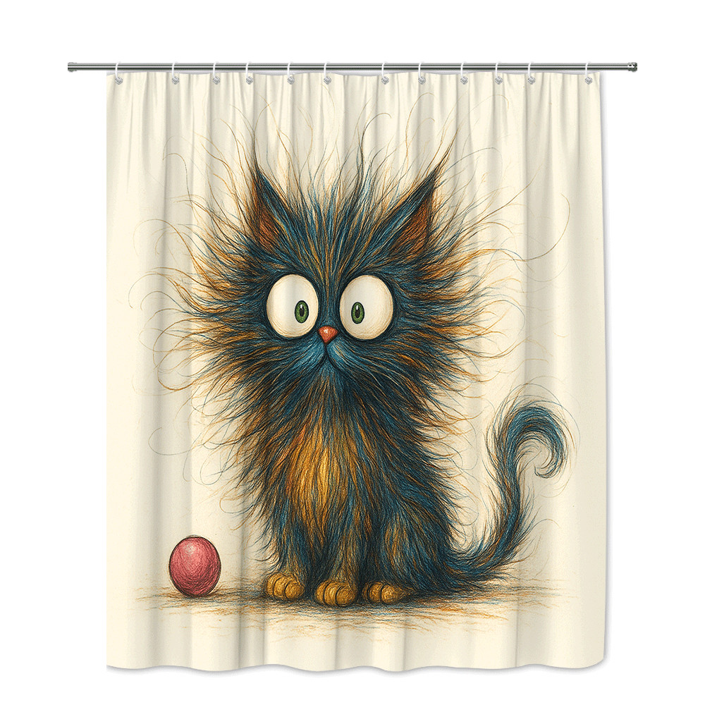 Cute Cat Shower Curtain - Colorful Furry Design for Kids Bathroom