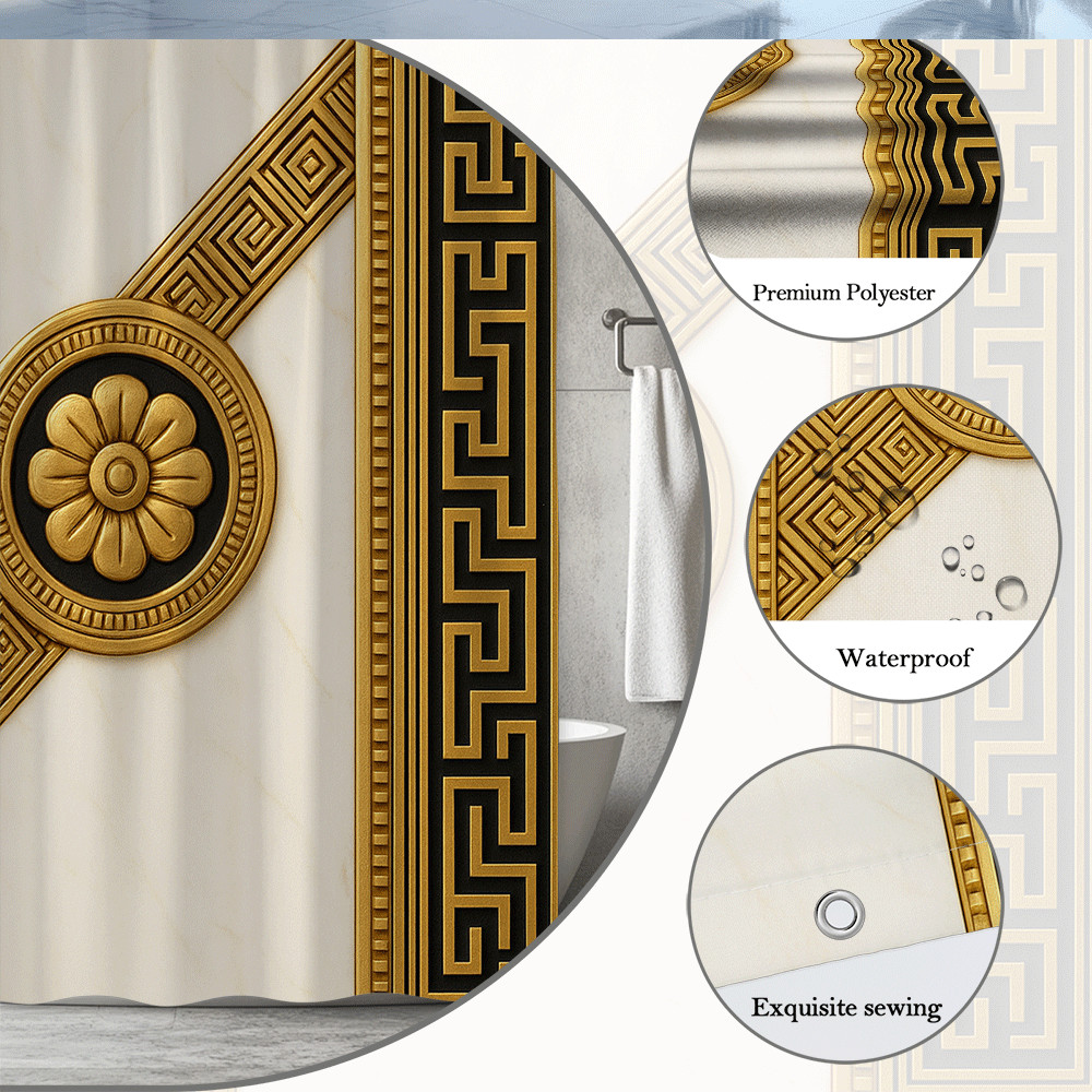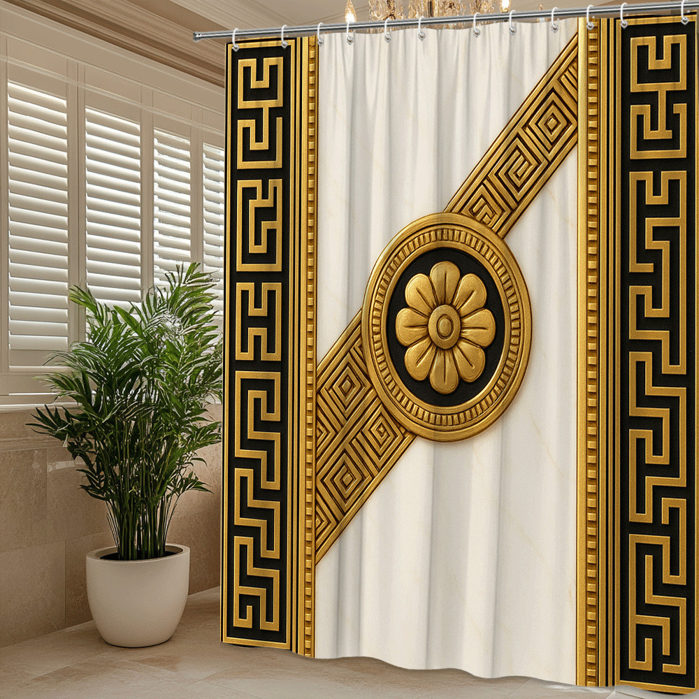 Elegant Black and Gold Shower Curtain with Floral Design, Modern Decor