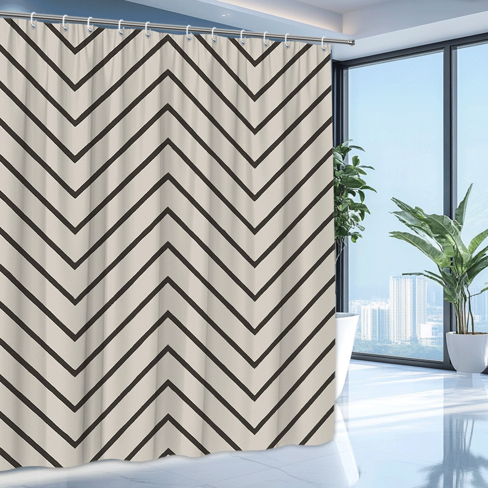 Modern Black and White Chevron Shower Curtain for Bathroom Decor