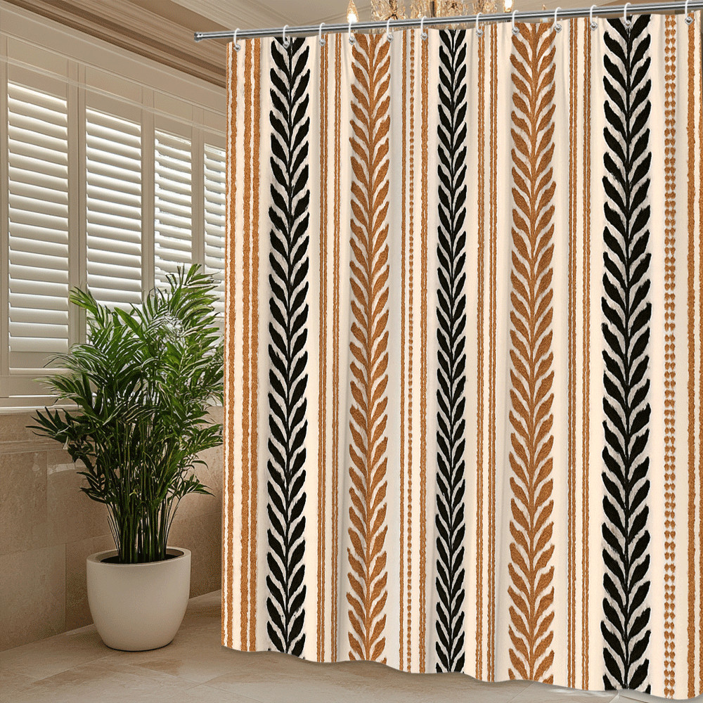 Boho Black and Brown Floral Shower Curtain, Waterproof Fabric, Modern Design