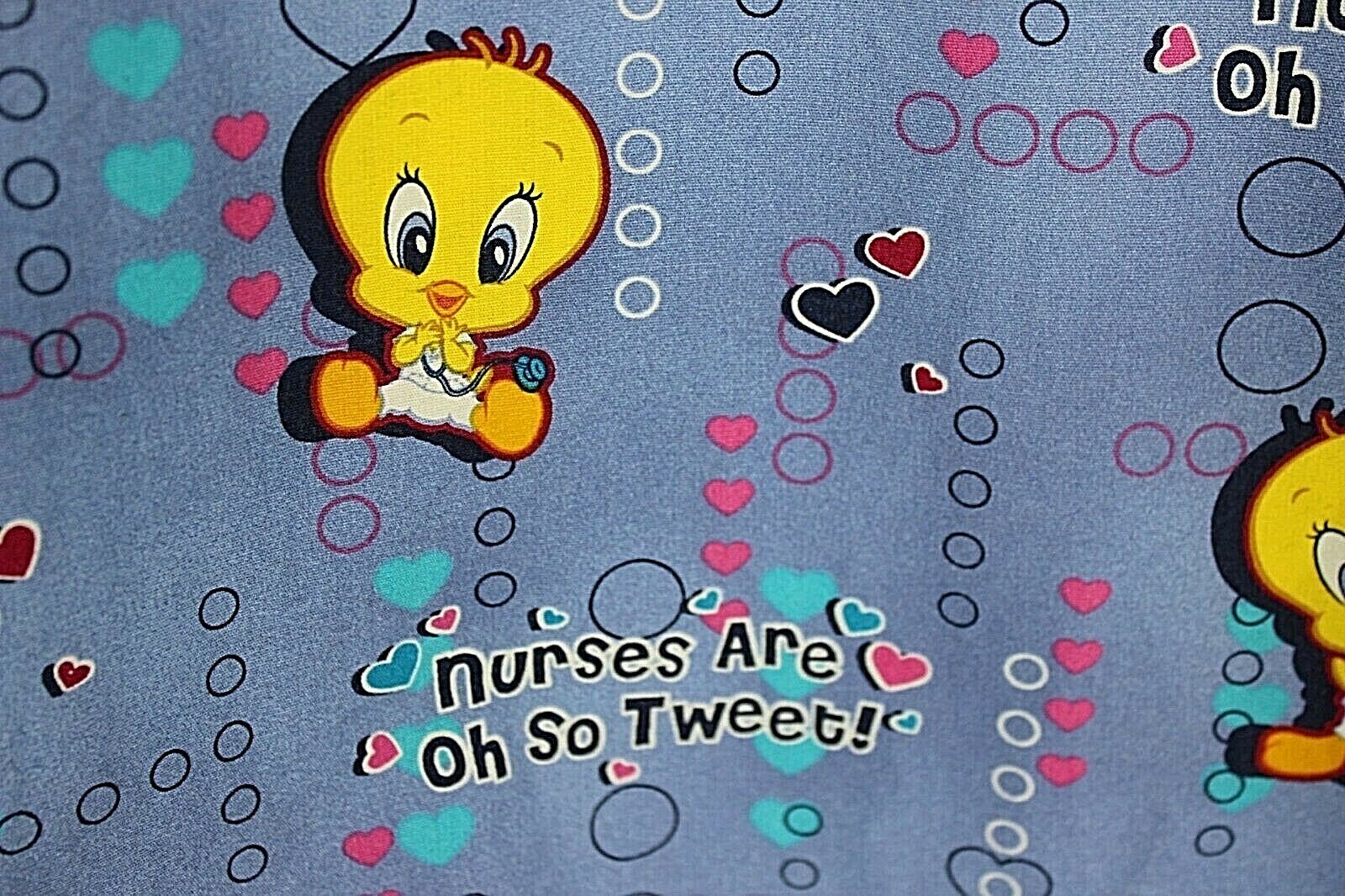 как выглядит LOONEY TUNES Scrub Top Adult Large Baby Tweety Nurses Are Oh So Tweet Pediatrics фото