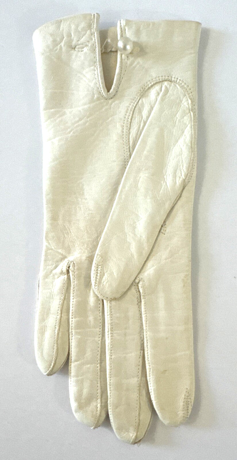 как выглядит White Lambskin Vintage Leather Gloves Pearl Button Lined Small Wrist Length фото