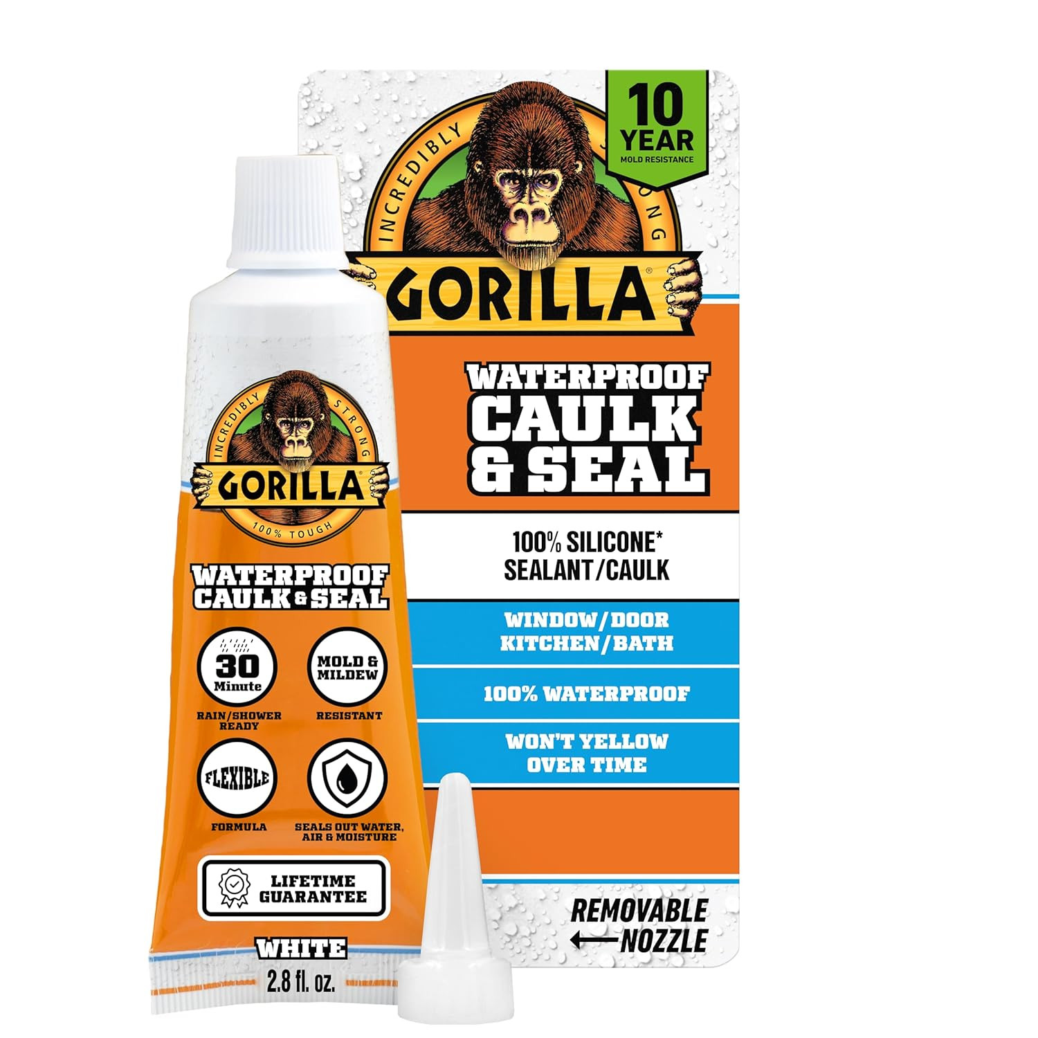 Gorilla 100 Silicone Caulk White 2.8oz Waterproof Sealant Tube