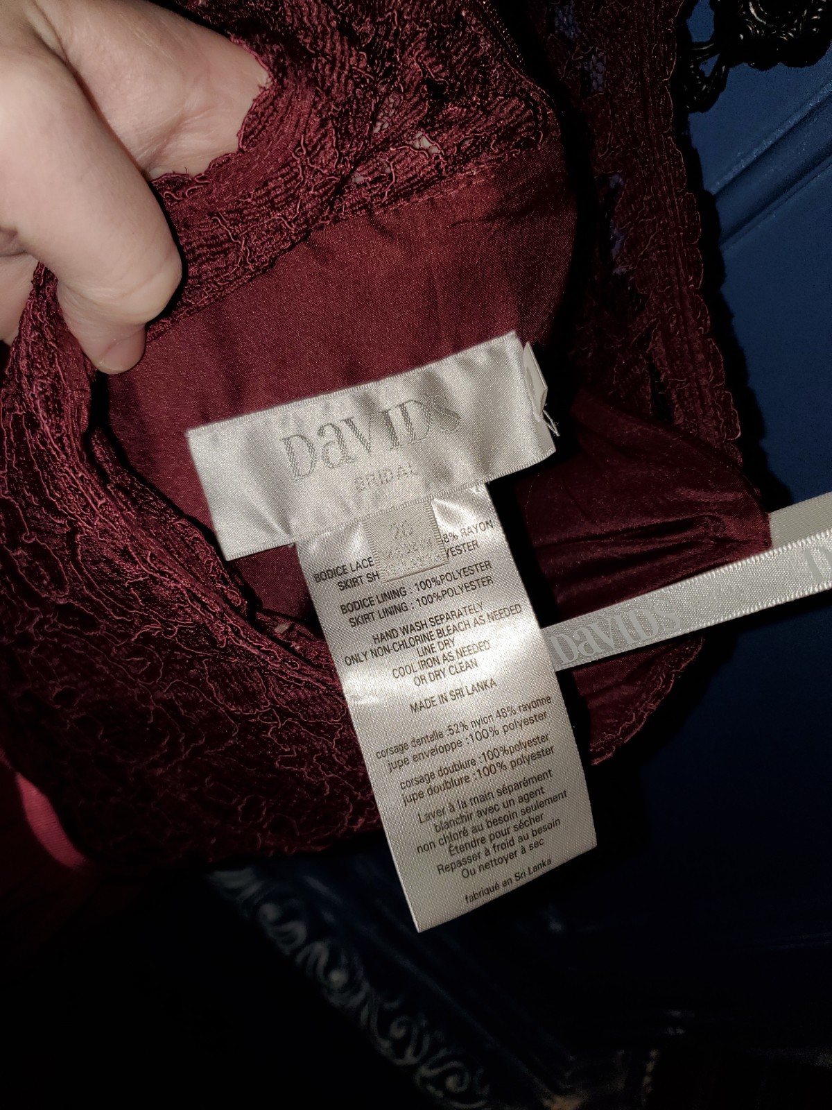 Davids Bridal Bridesmaid Formal Dress Burgundy Wine Size 20, Worn Once