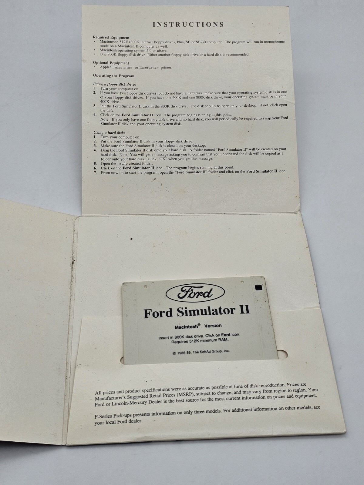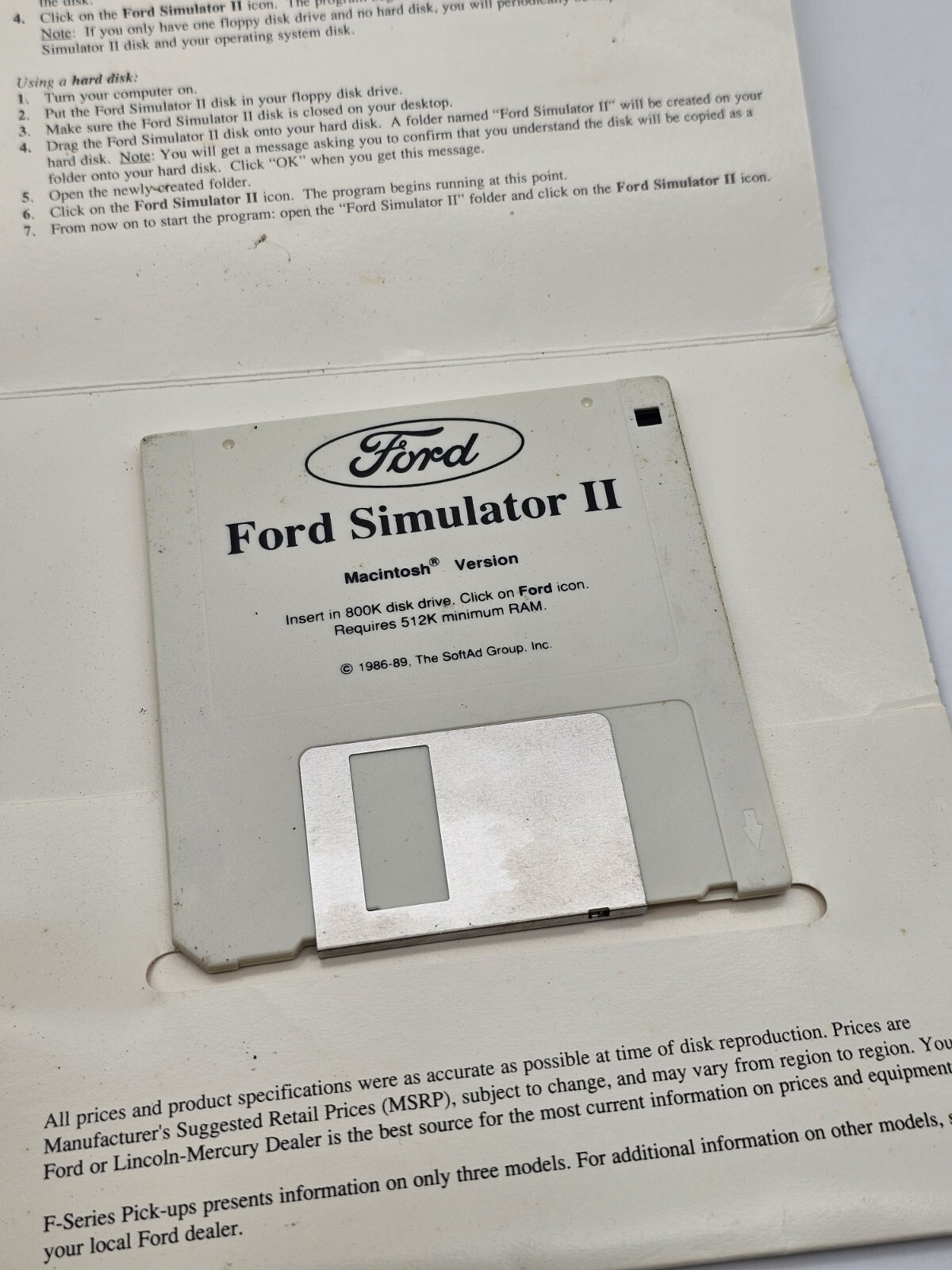 Vintage Ford Simulator II Macintosh 1986-1989 Driving Similator Floppy Disk
