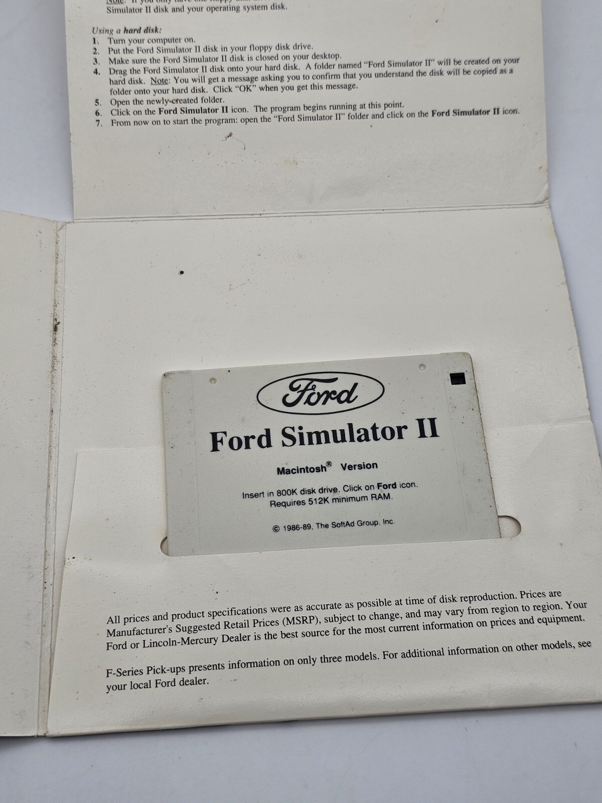 как выглядит Vintage Ford Simulator II Macintosh 1986-1989 Driving Similator Floppy Disk фото