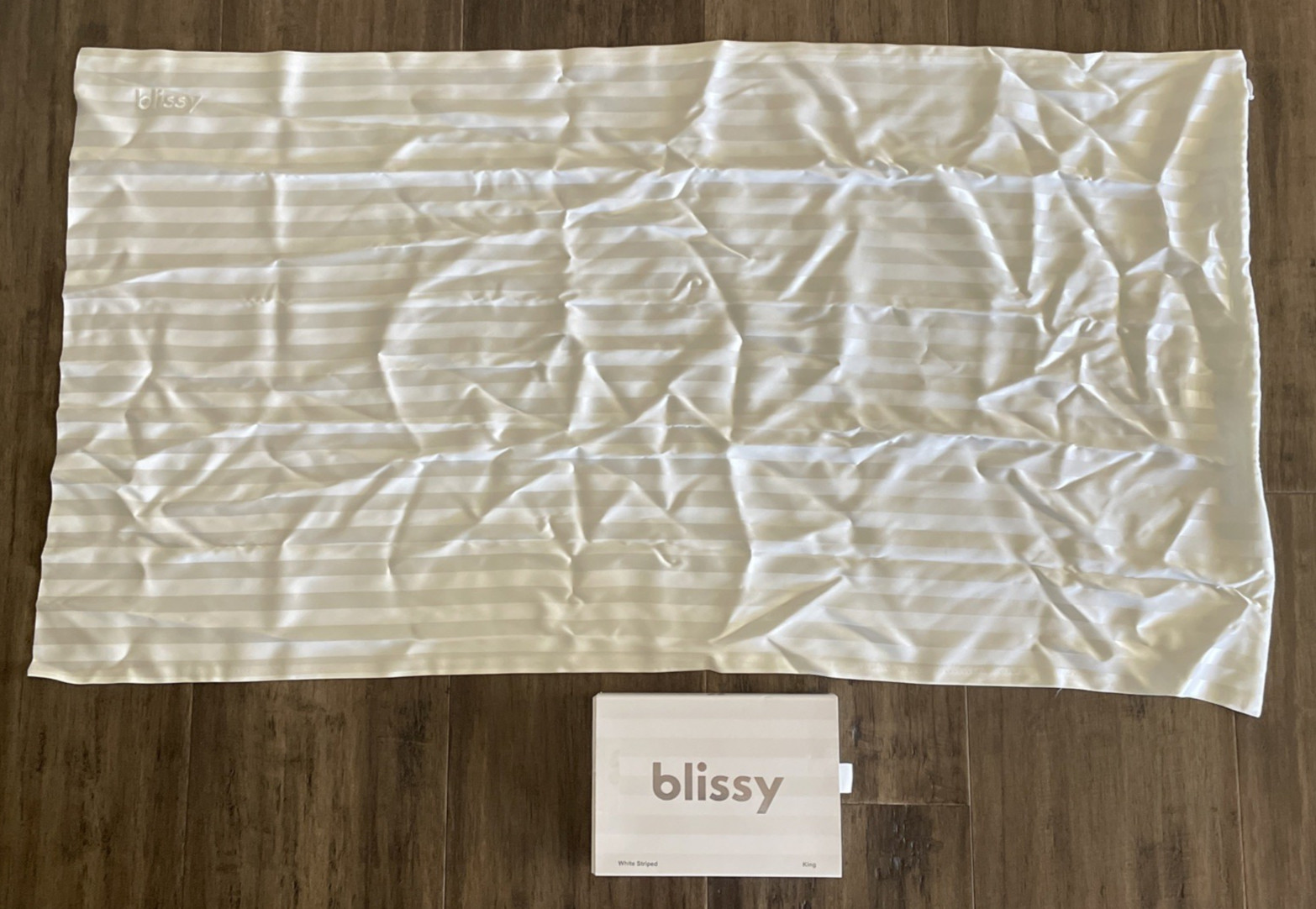 как выглядит NWOB 105 BLISSY Mulberry Silk Pillowcase KING 20x36 White Striped фото