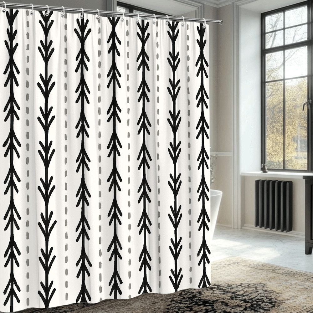 Stylish Black and White Shower Curtain with Modern Leaf Pattern