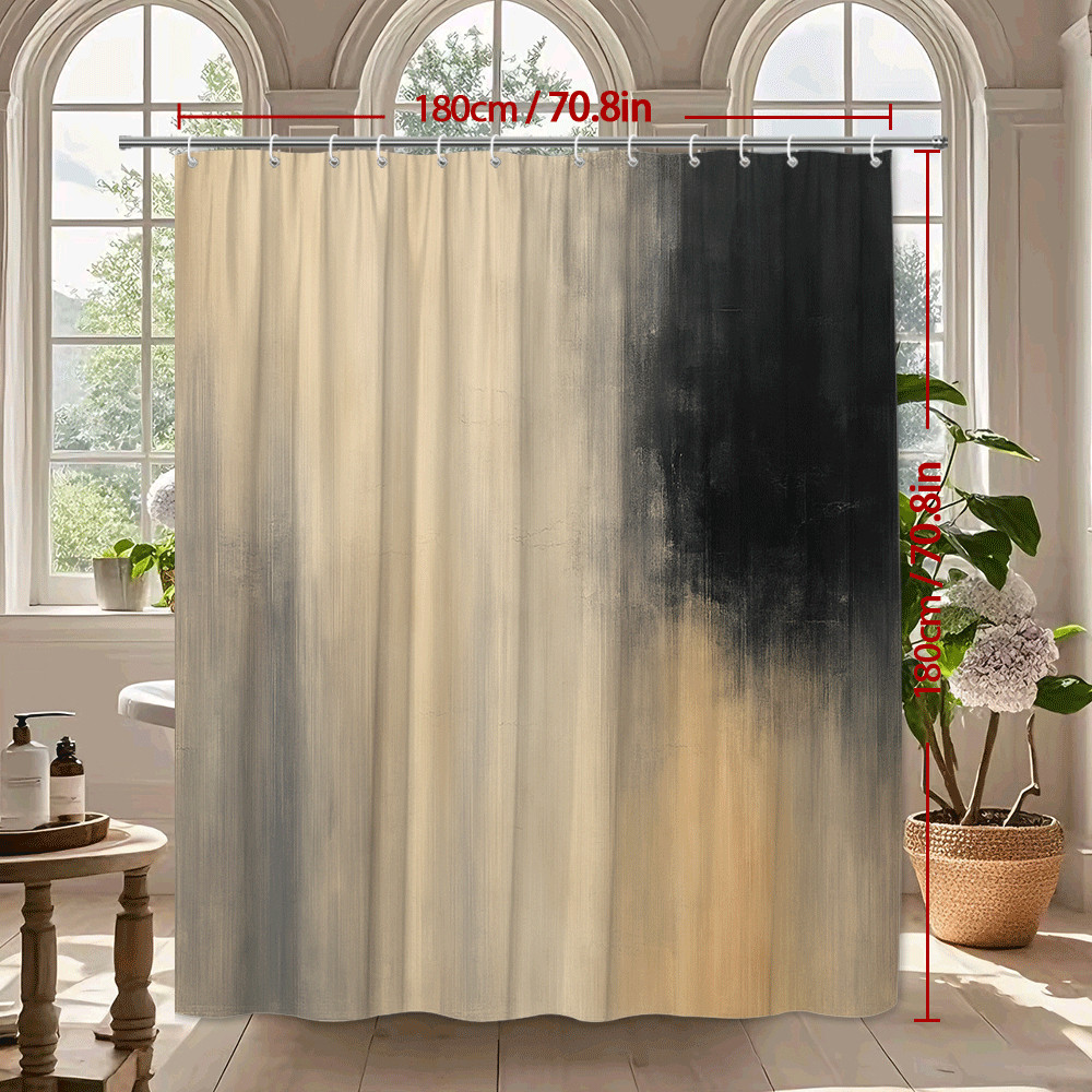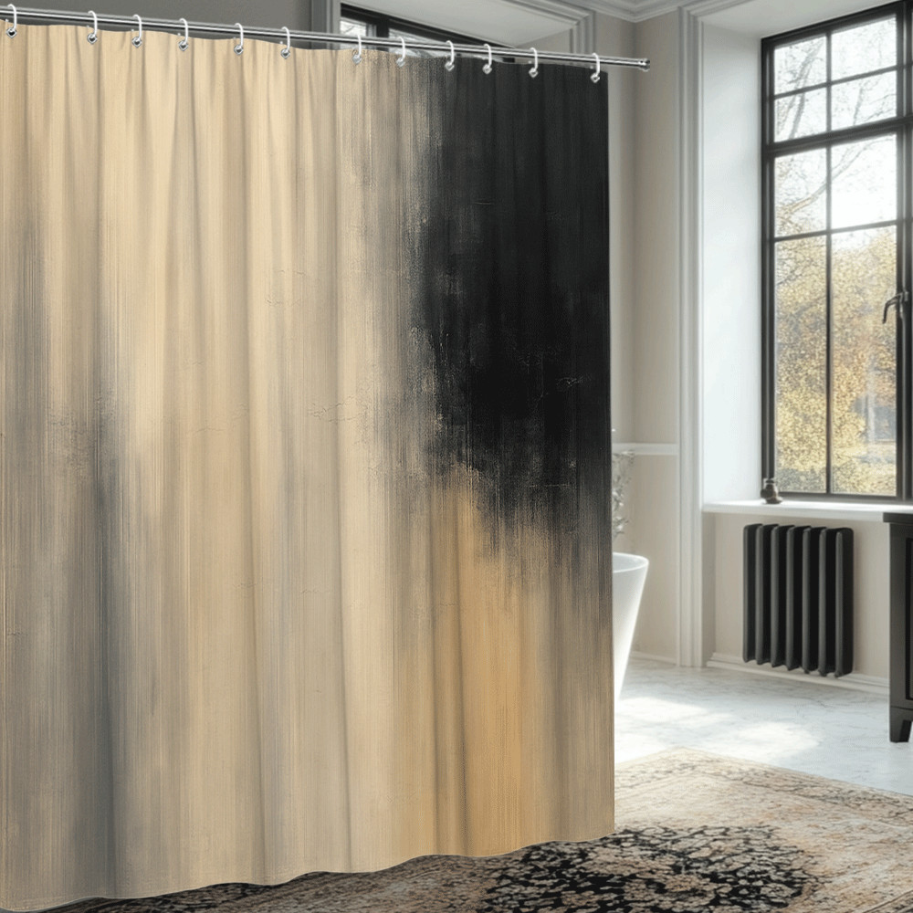 Modern Black and Beige Shower Curtain, Waterproof Fabric for Home Decor