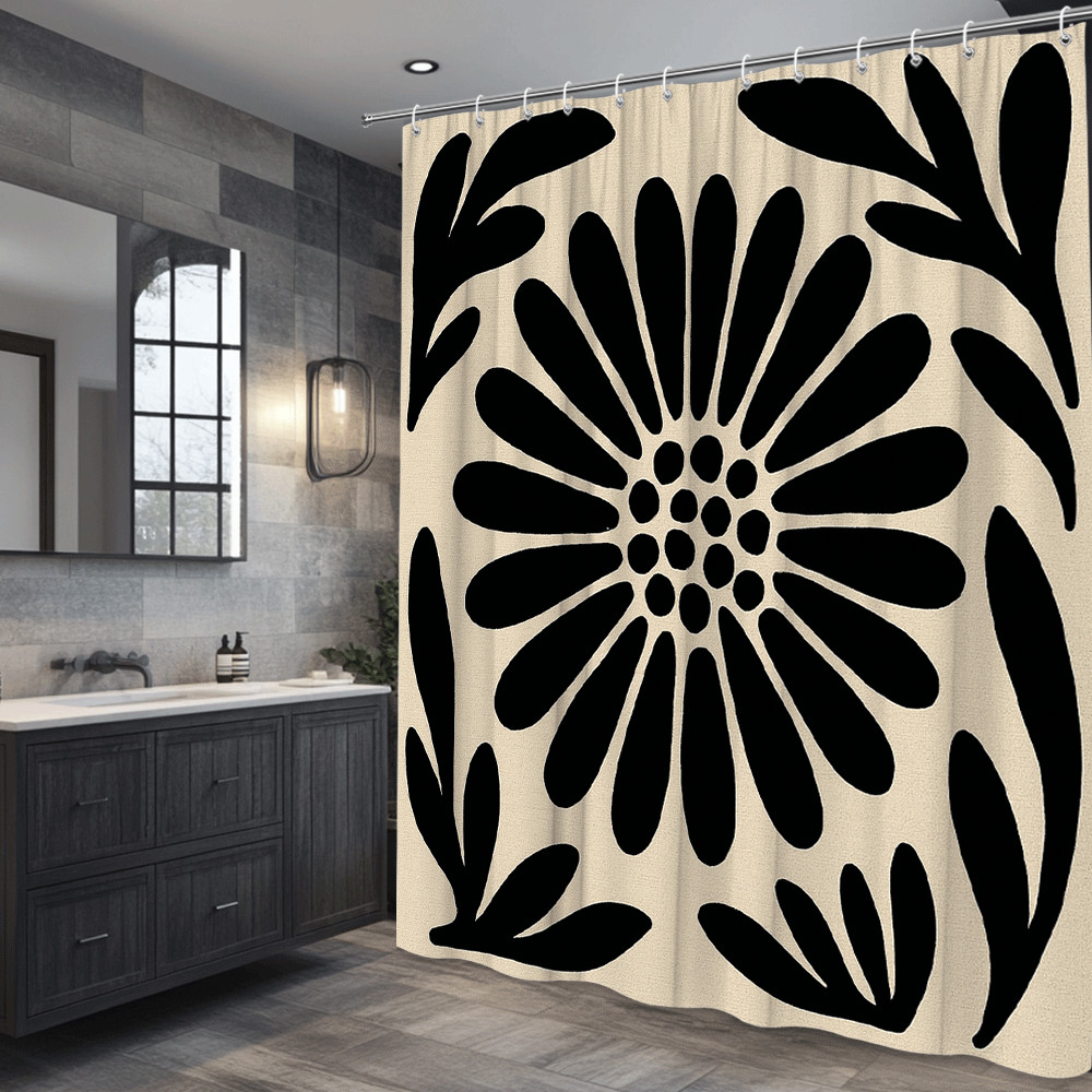 Black Floral Shower Curtain - Modern Design for Bathroom Decor