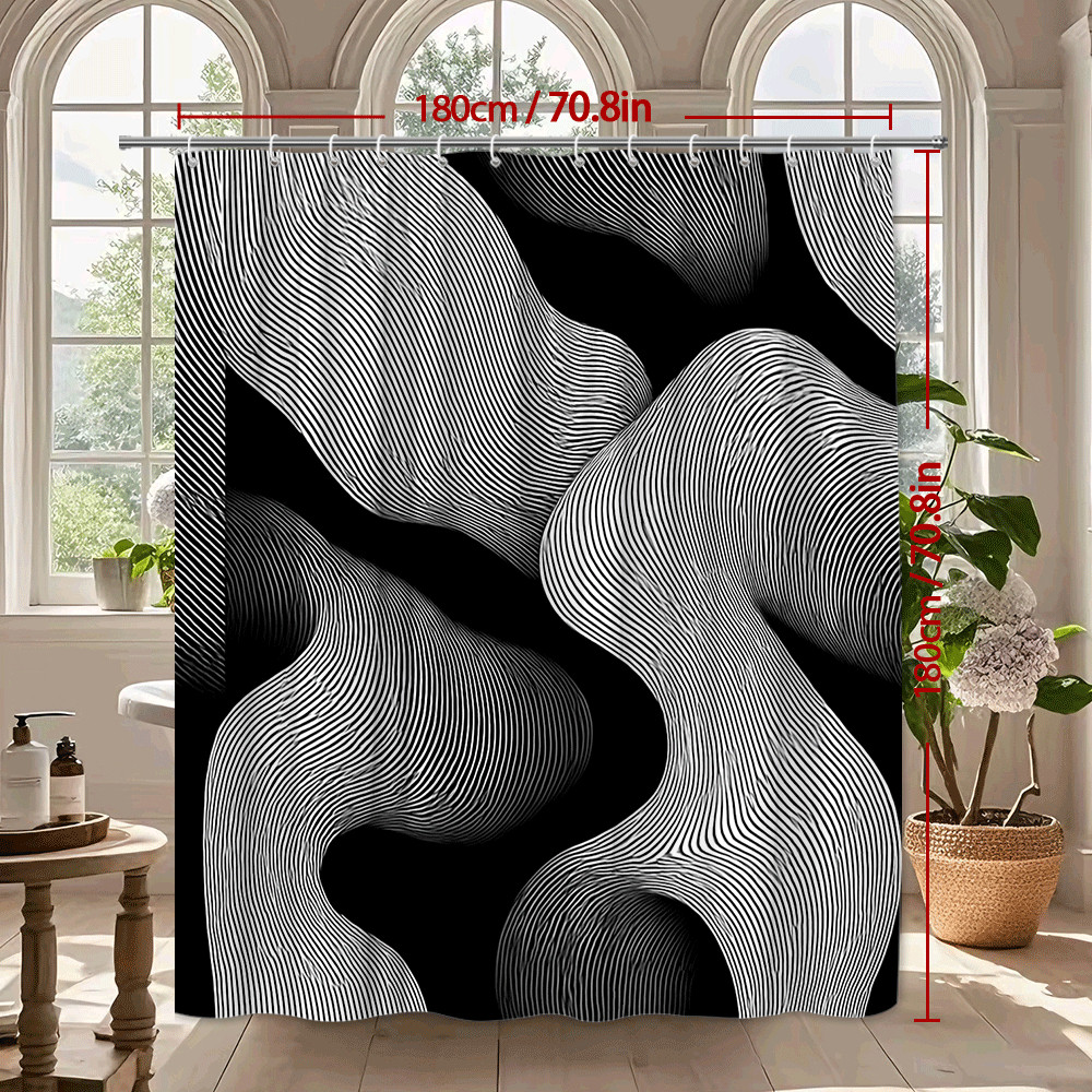 Modern Black and White Wave Design Shower Curtain