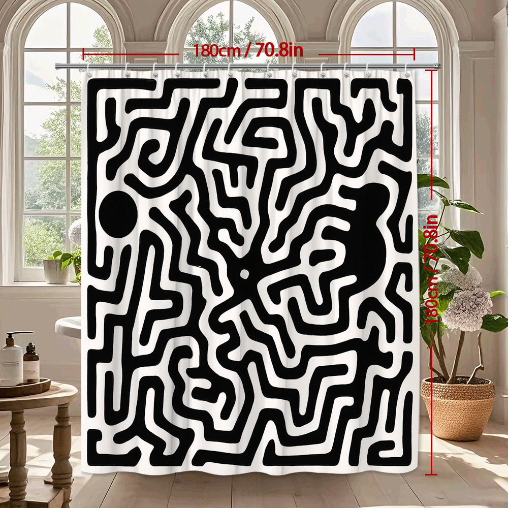 как выглядит Black and White Modern Shower Curtain with Abstract Design фото