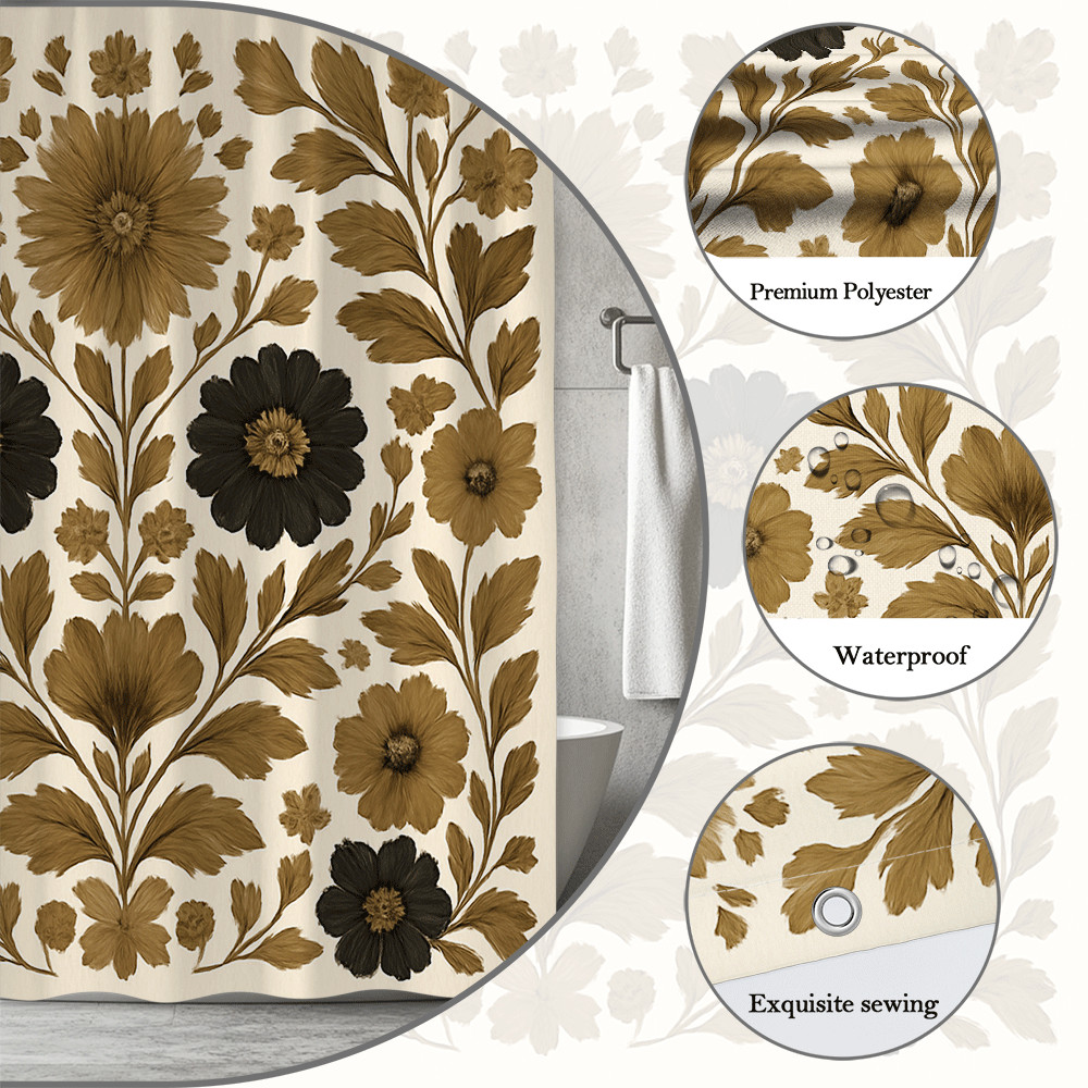 Floral Pattern Shower Curtain - Black and Brown Design - Waterproof