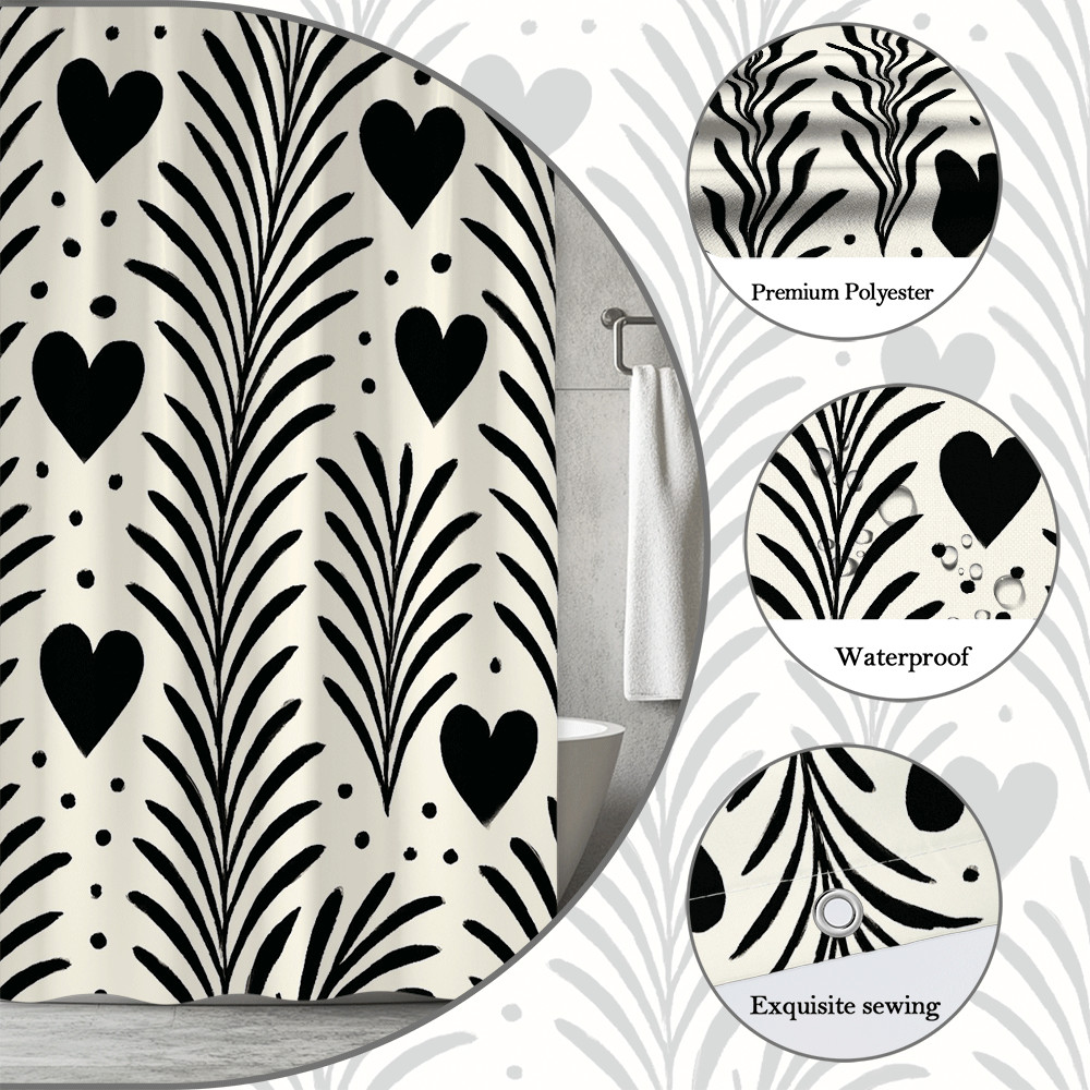 Black and White Heart Shower Curtain - Modern Fabric Design