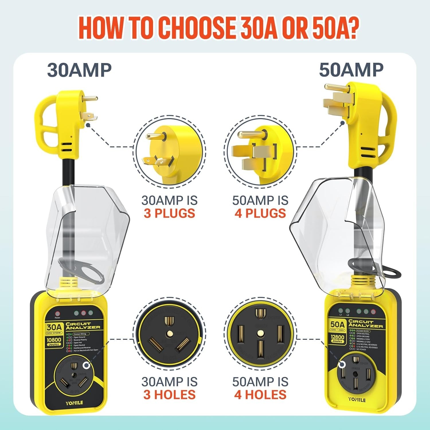 RV Surge Protector, 50 Amp 12800 Joules RV Circuit Analyzer Full Protection,