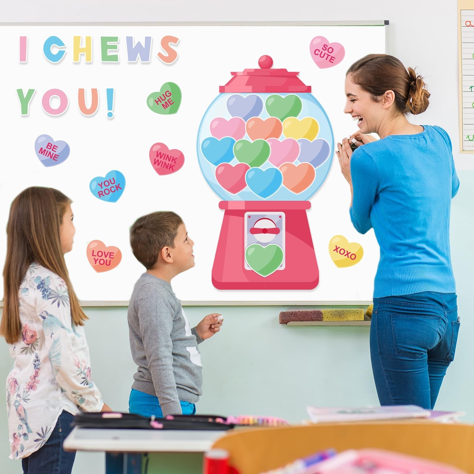 как выглядит 40Pcs Valentines Day Cut-Out Bulletin Board Decor with Glue Point Colorful G... фото