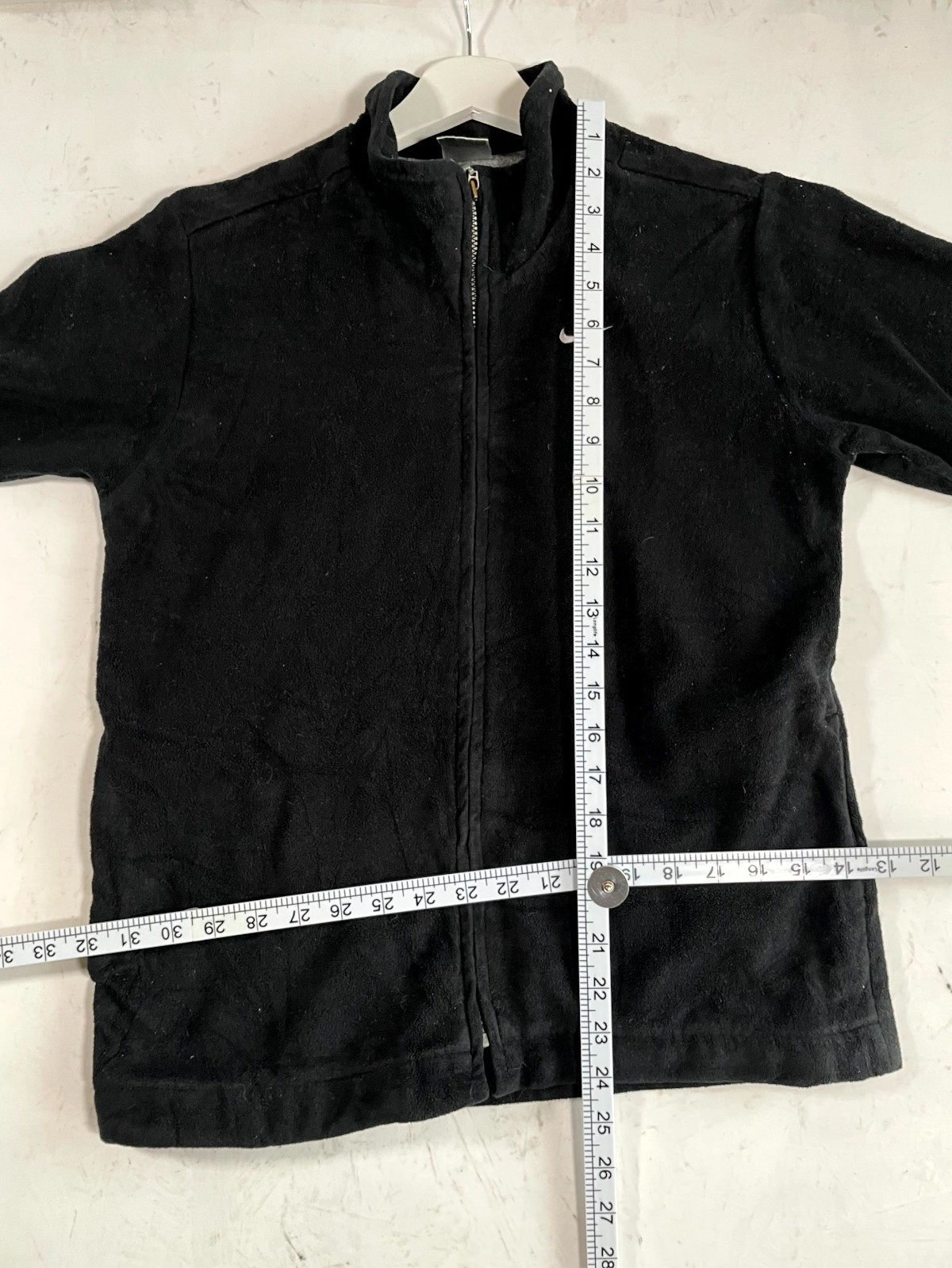 VTG Y2K Nike Fleece Jacket Womens Small Black Swoosh Logo Silver Tag Full Zip