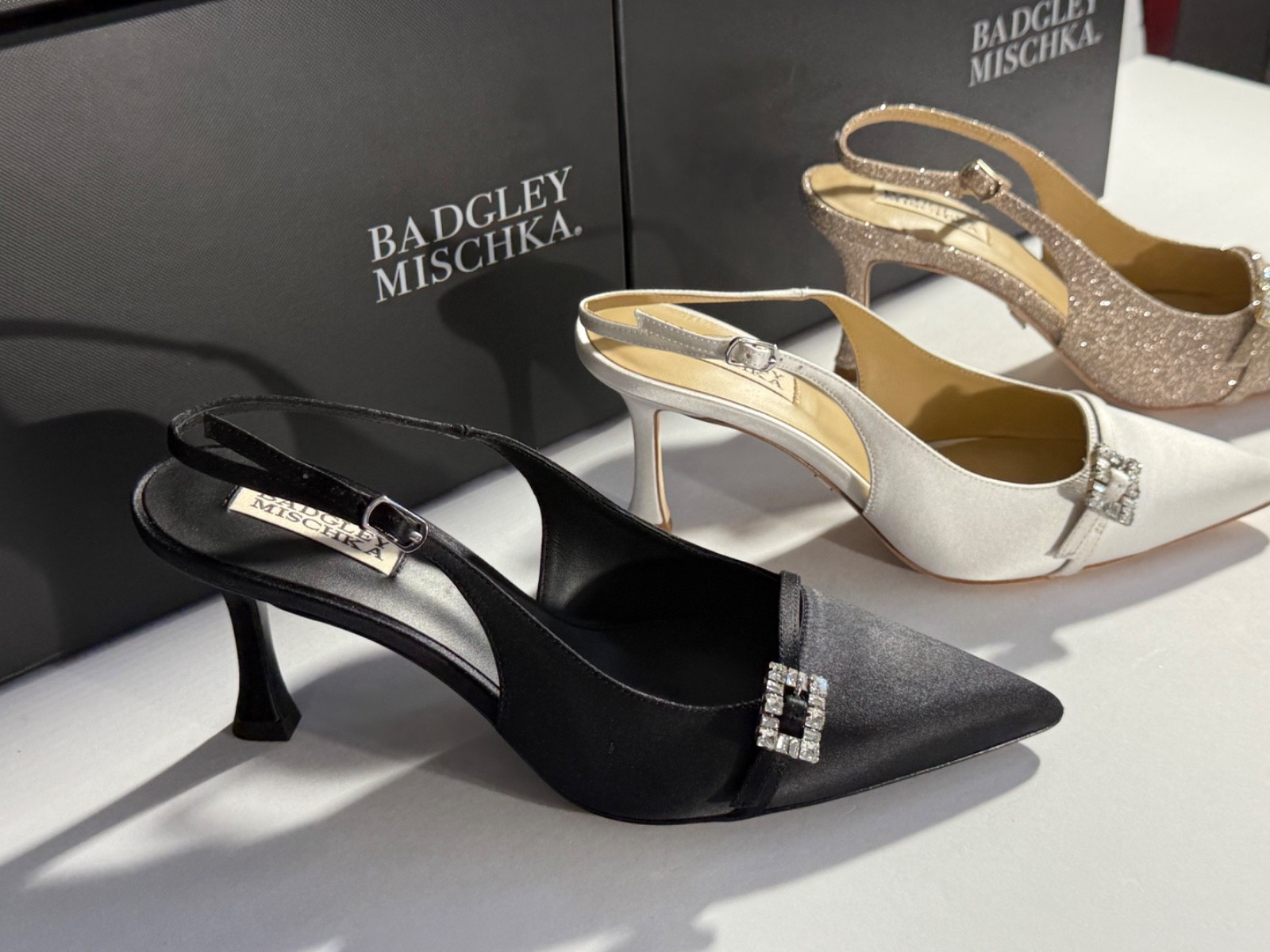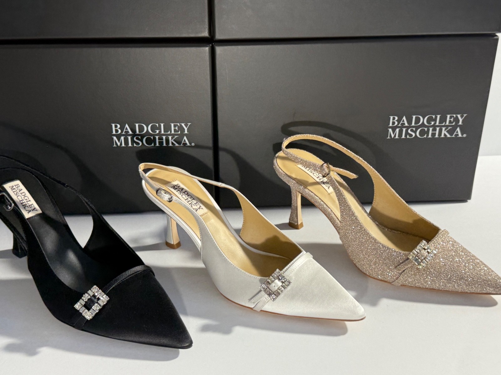 как выглядит Badgley Mischka Womens Annmarie Jeweled Slingback Stiletto Pumps new ,variety фото