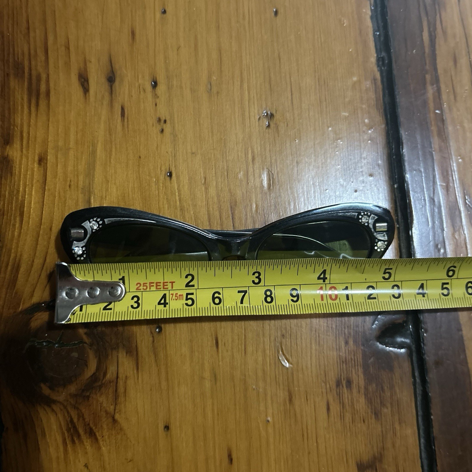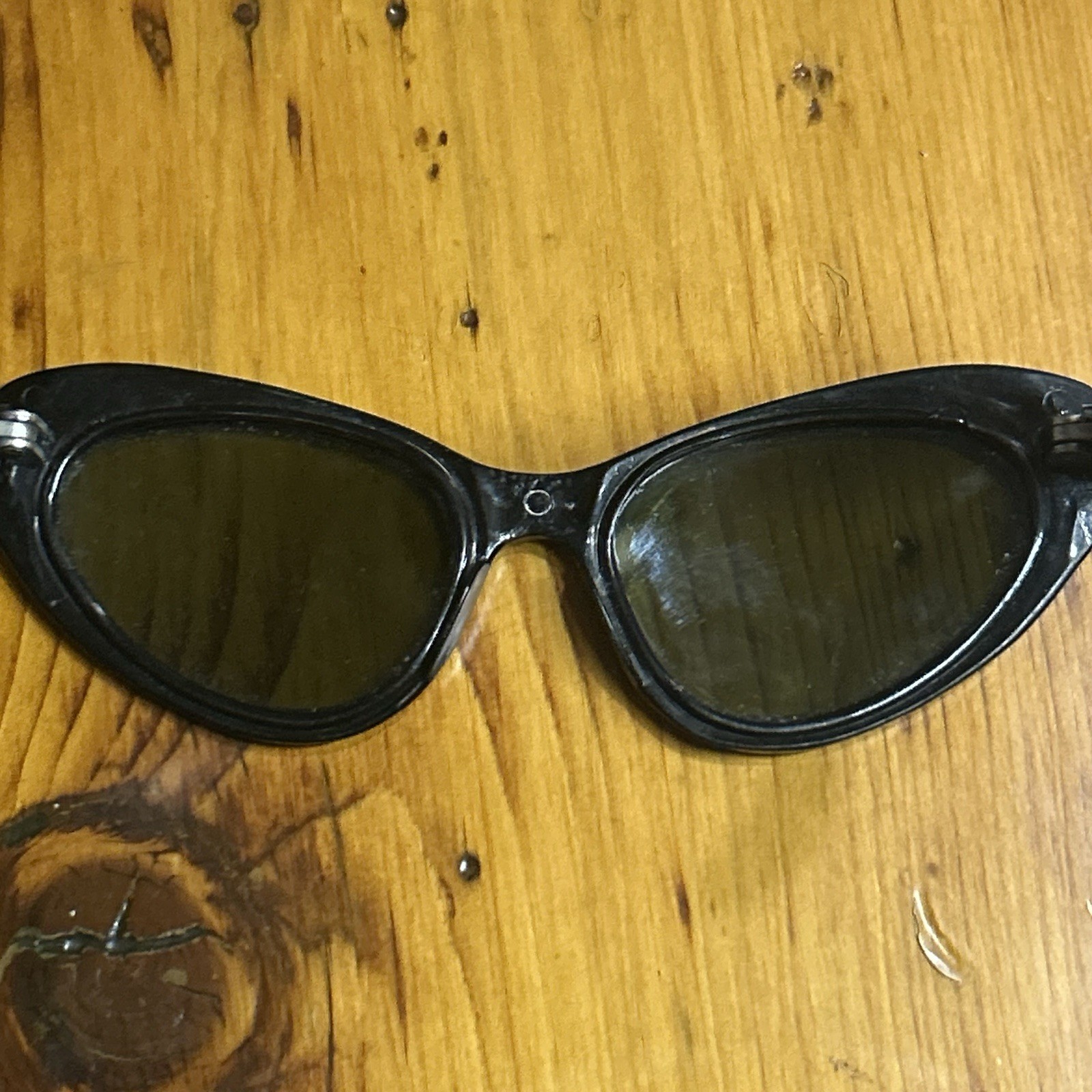 как выглядит Rare 50s Vintage Cats Eye Sunglasses Acetate Green Glass Lens Made In USA Ornate фото