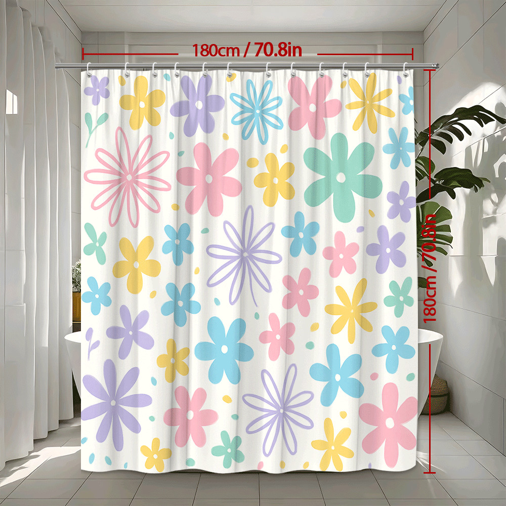 Colorful Floral Shower Curtain - Cute Spring Design for Kids Bathroom