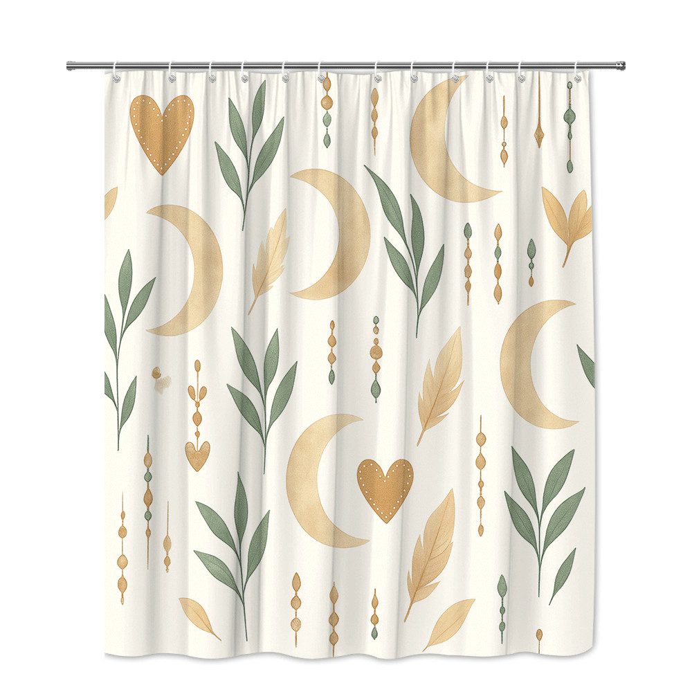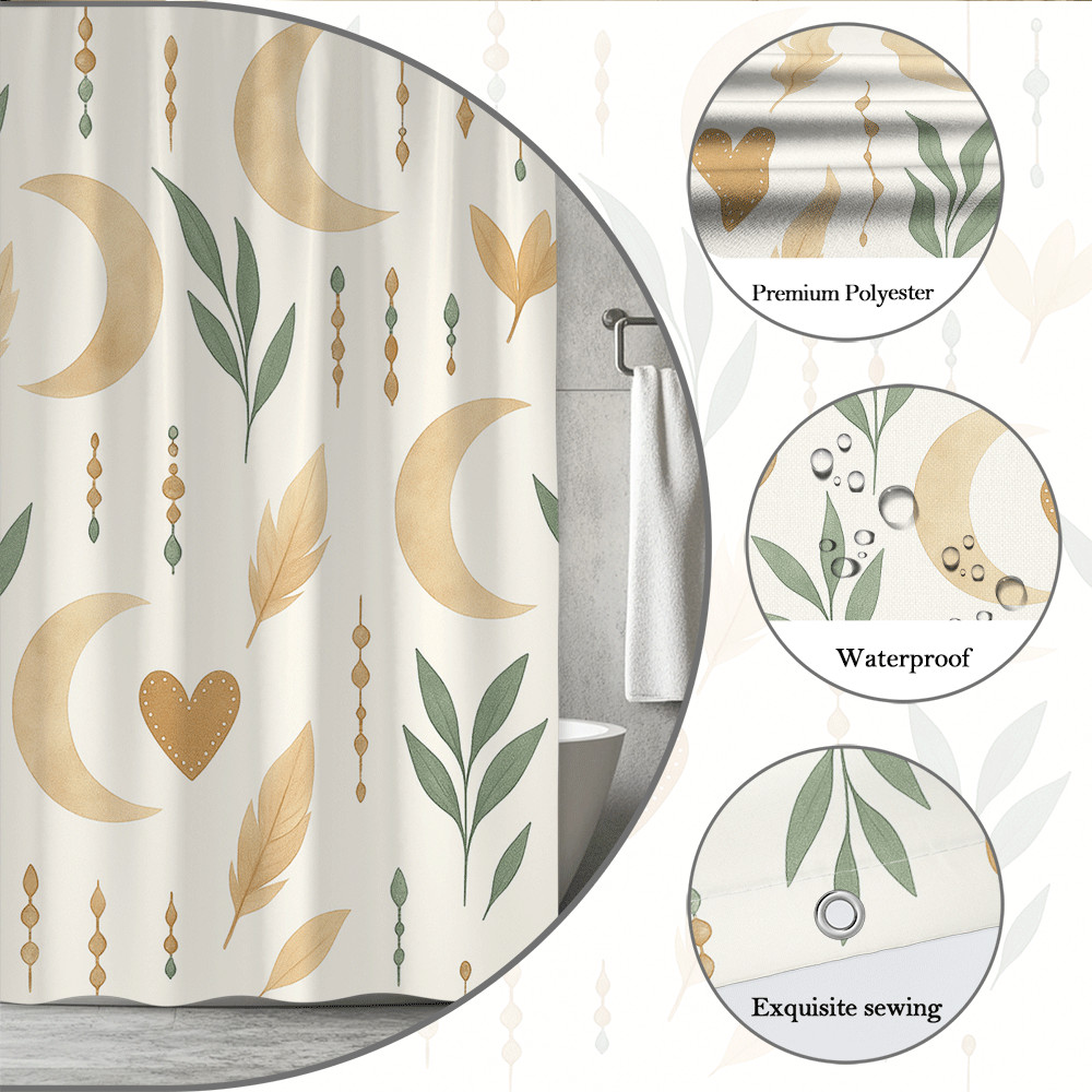 Boho Floral Shower Curtain with Leaves and Moon Design