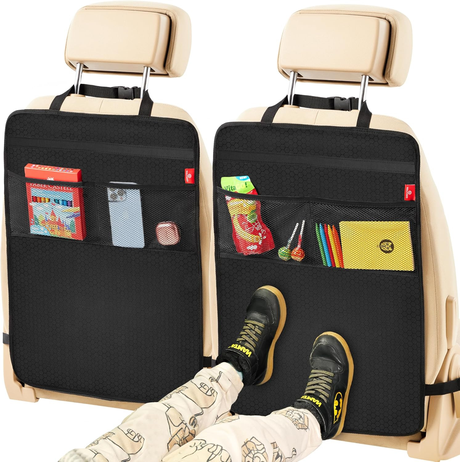 Protector asiento trasero 2 piezas para ninos impermeable bolsillos de negros