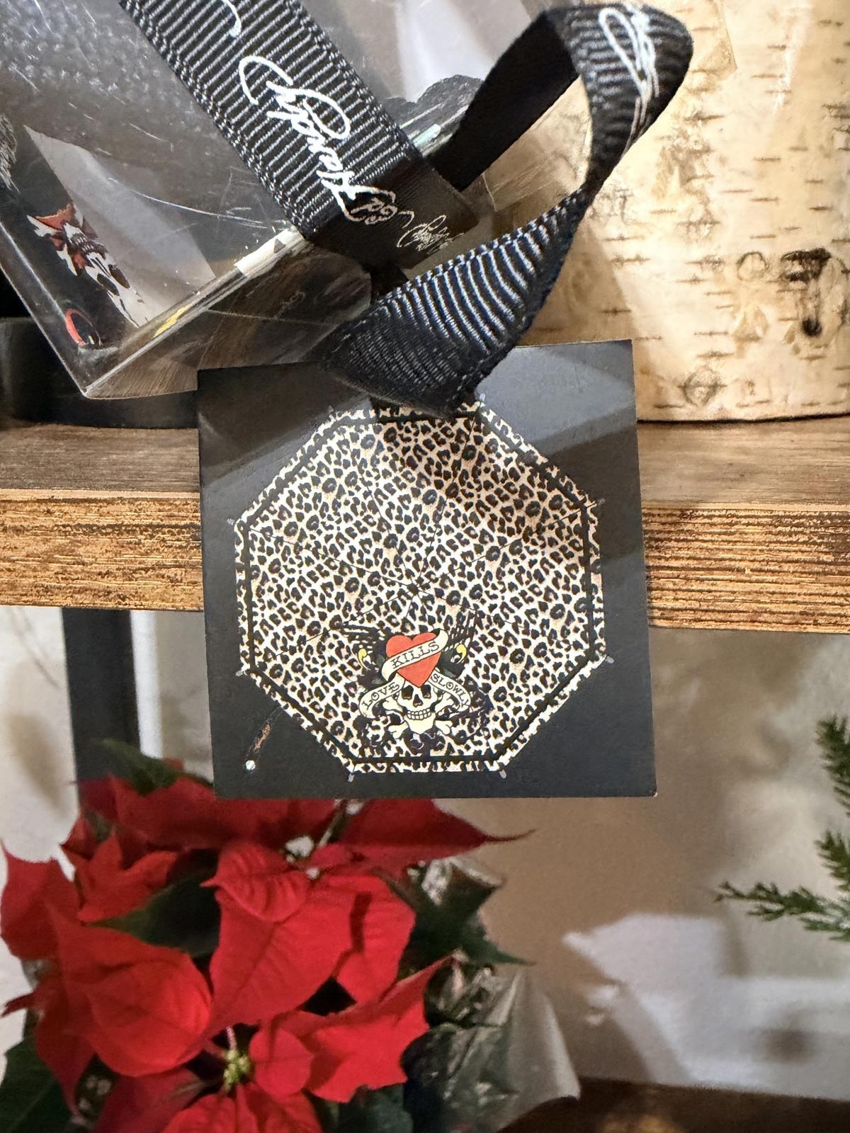 Ed Hardy Leopard Print Umbrella with Skull and Heart Design