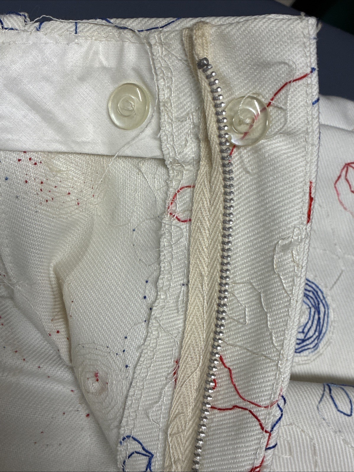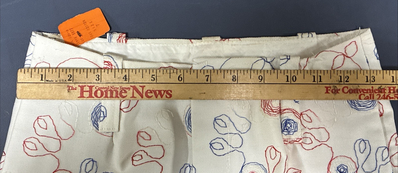Vintage Women's Embroidery 1960s 1970s Hippie Pants White Red Blue Size 7 NWT