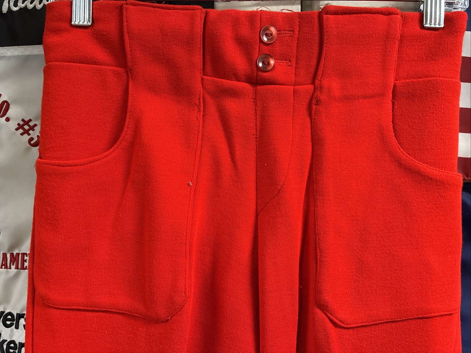 как выглядит Vintage 70s Womens Red Bell Bottom Stretch Waist Pants Size 7 Flare Leg фото