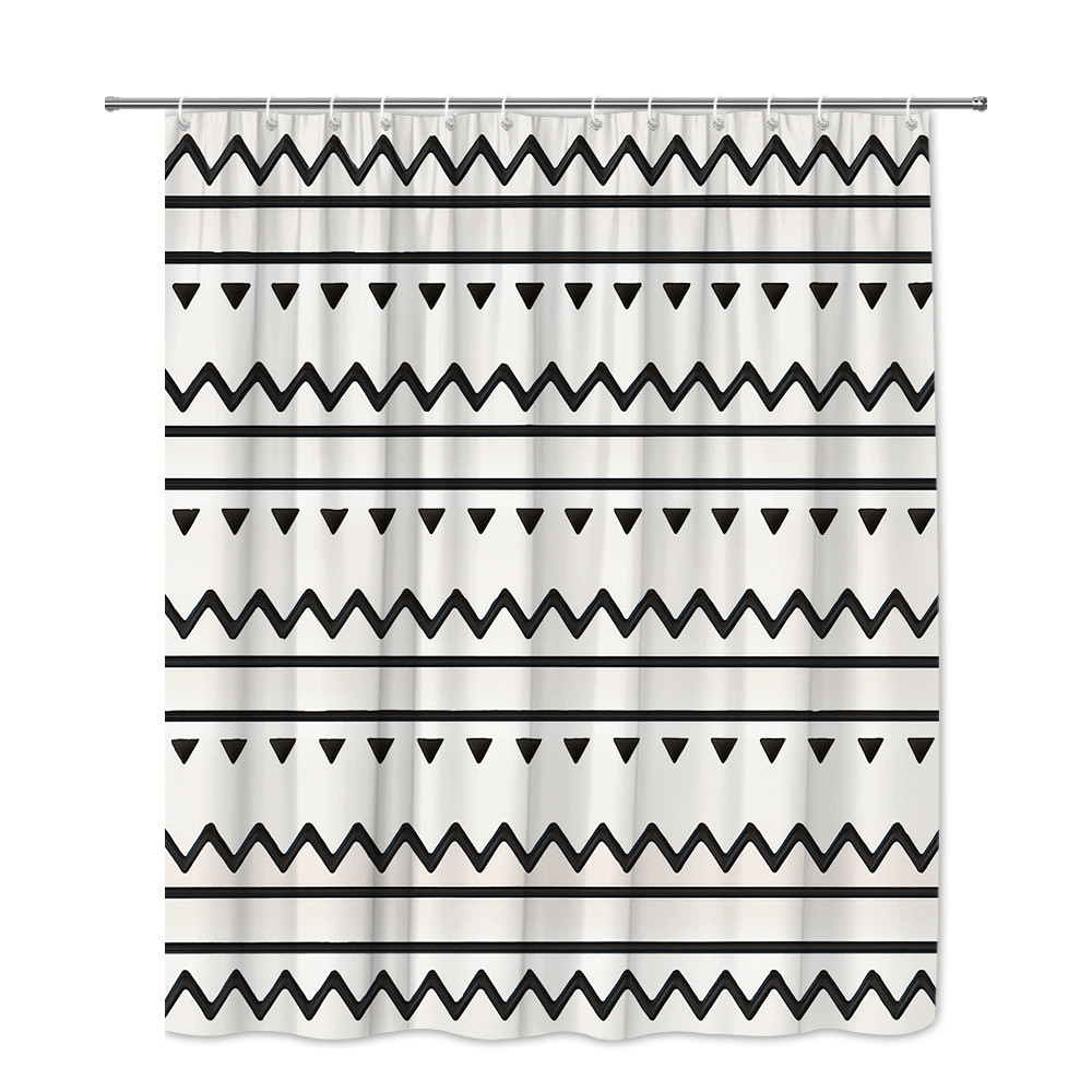 Black and White Geometric Shower Curtain, Modern Bathroom Decor