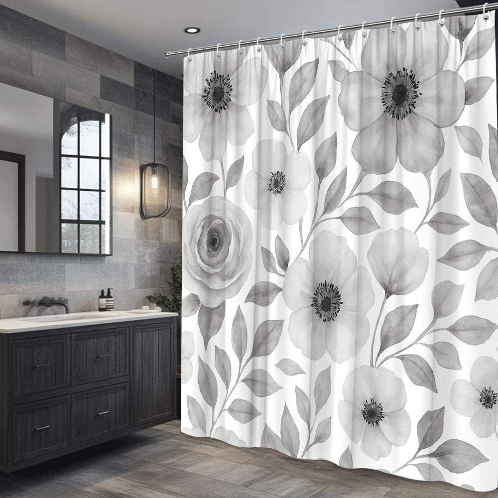 Chic Black and White Floral Shower Curtain for Modern Bathrooms