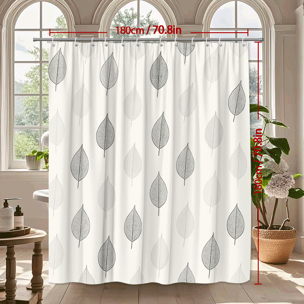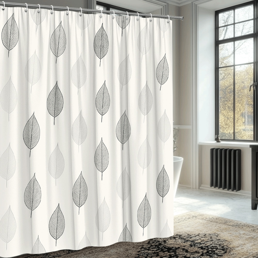 Elegant Black and White Leaf Shower Curtain - Modern Bathroom Decor