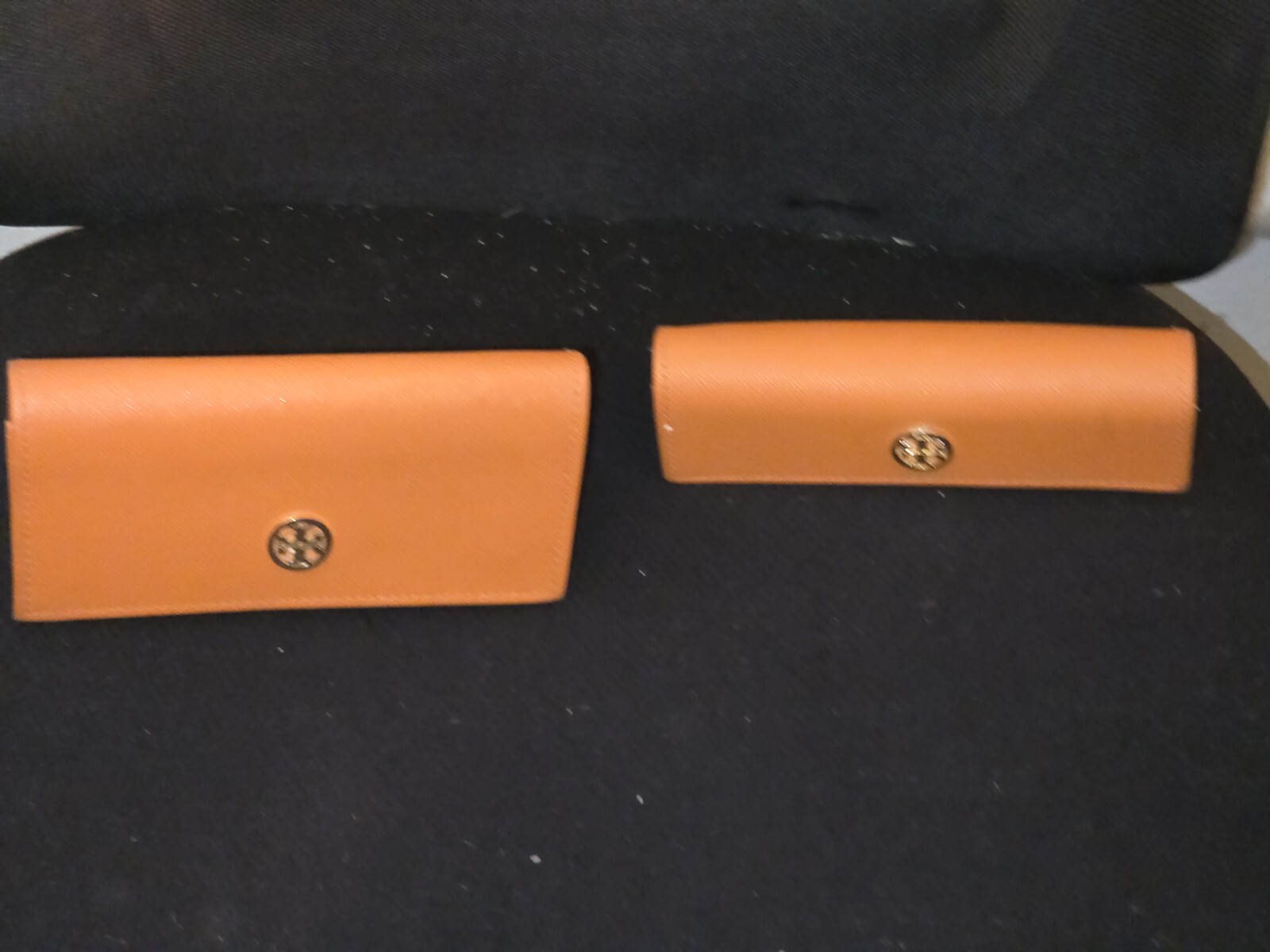 как выглядит Pair Of Tory Burch Sunglasses Cases Magnetic Closure Orange Eyeglasses Holder фото
