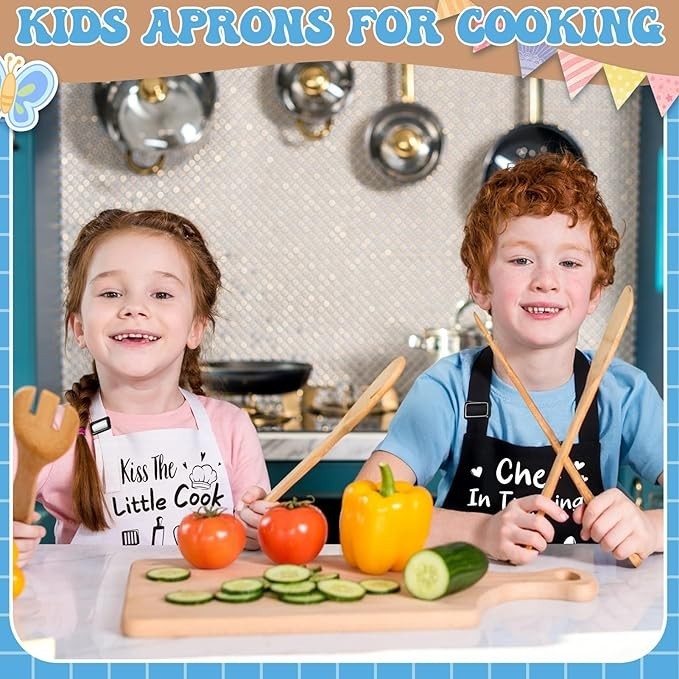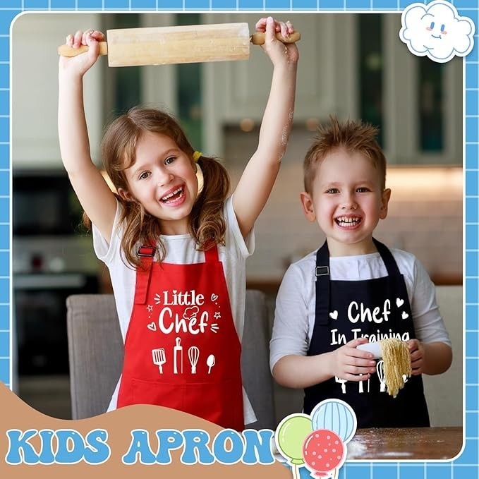 3 Pack Kids Apron for Cooking Adjustable Kids Chef Kitchen,Funny Aprons..